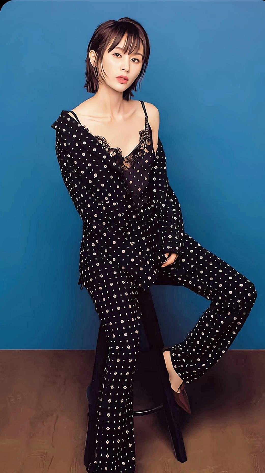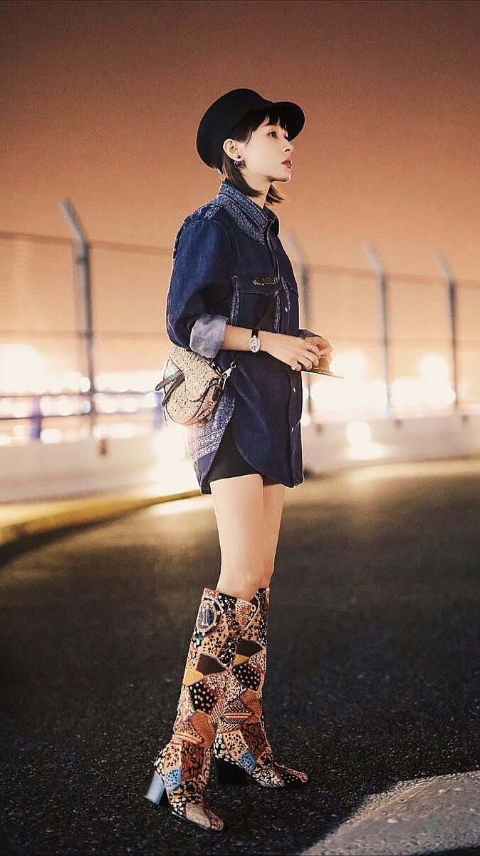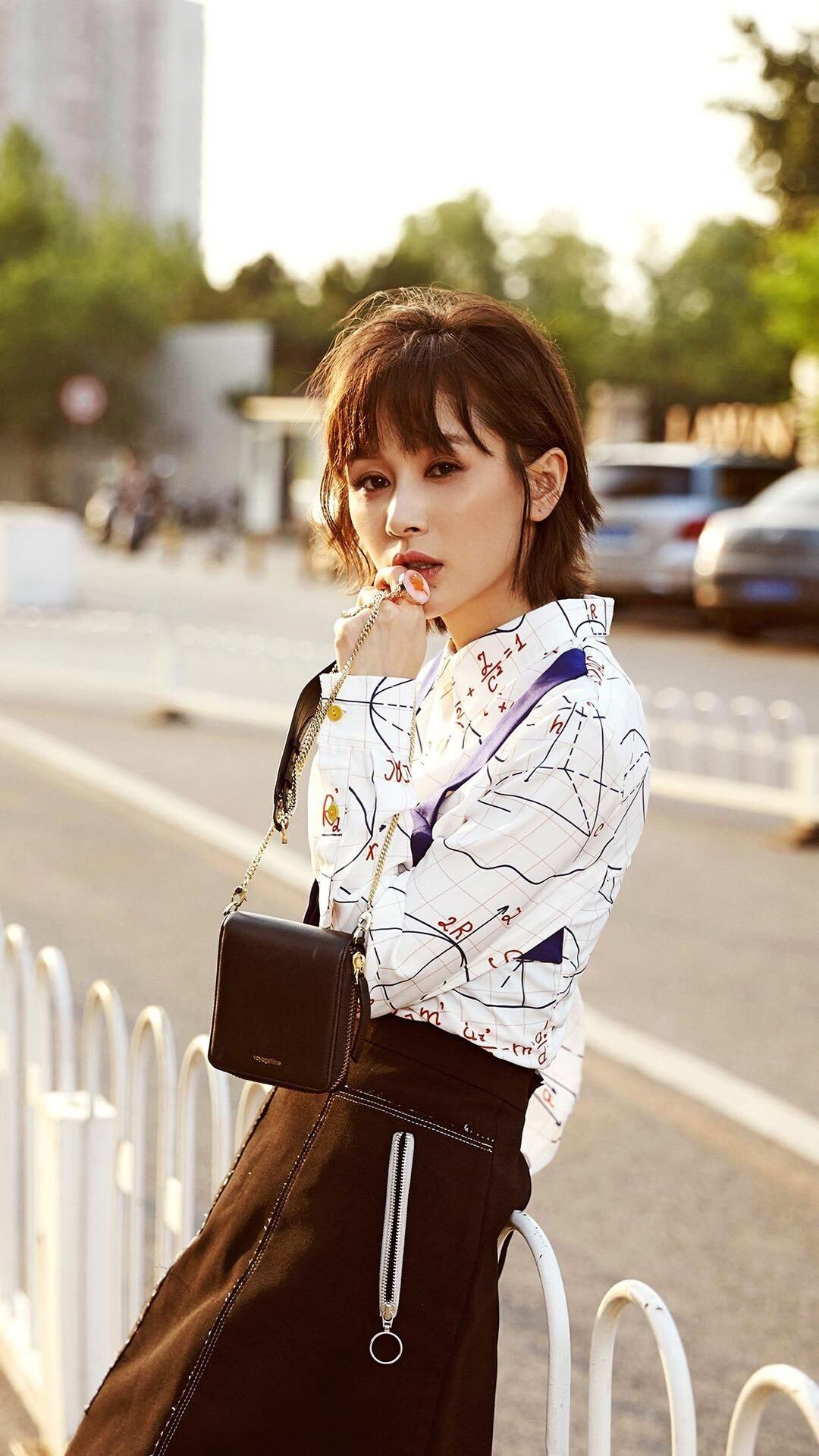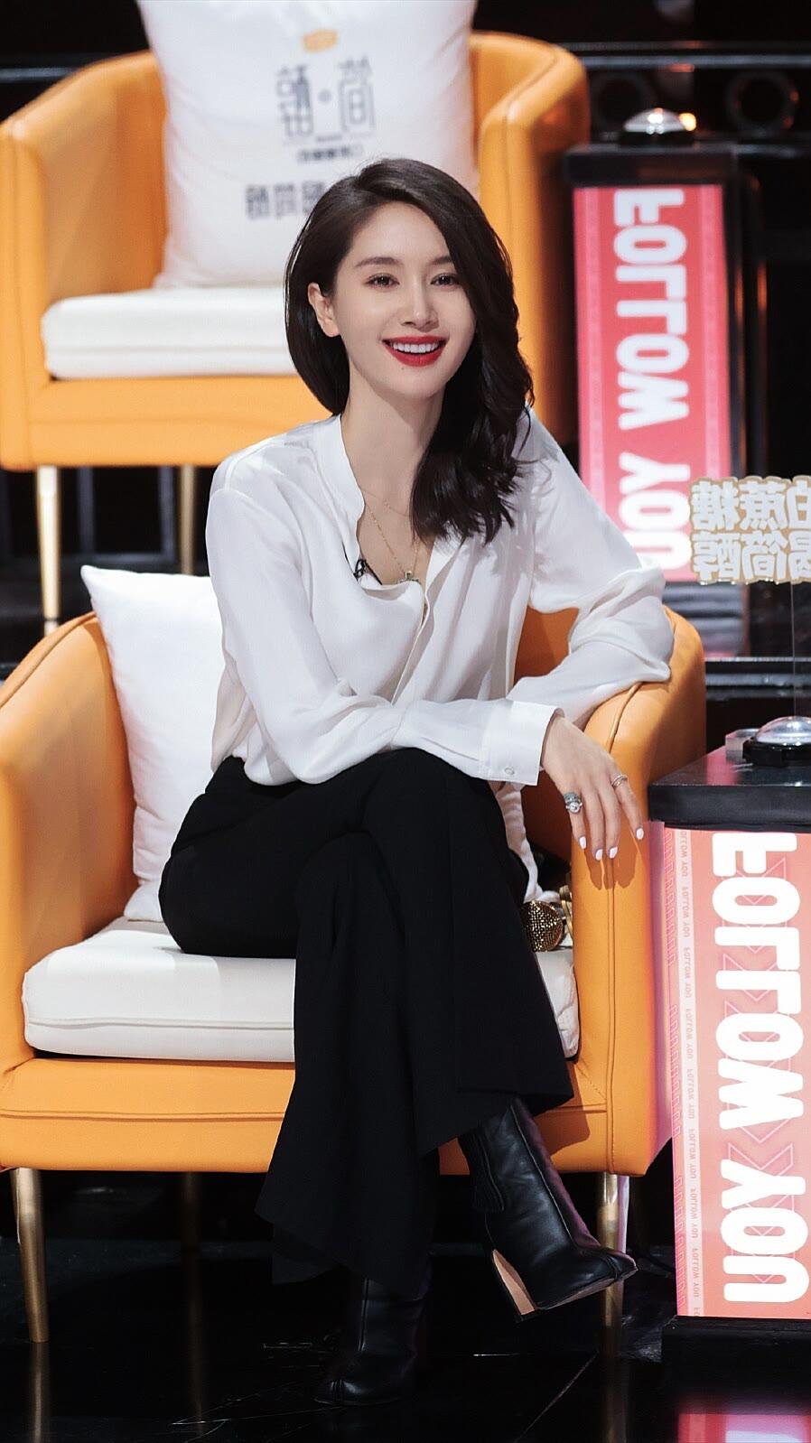 刘亦菲这条裤子挺养生,毕竟降温了肚脐眼必须护住啊