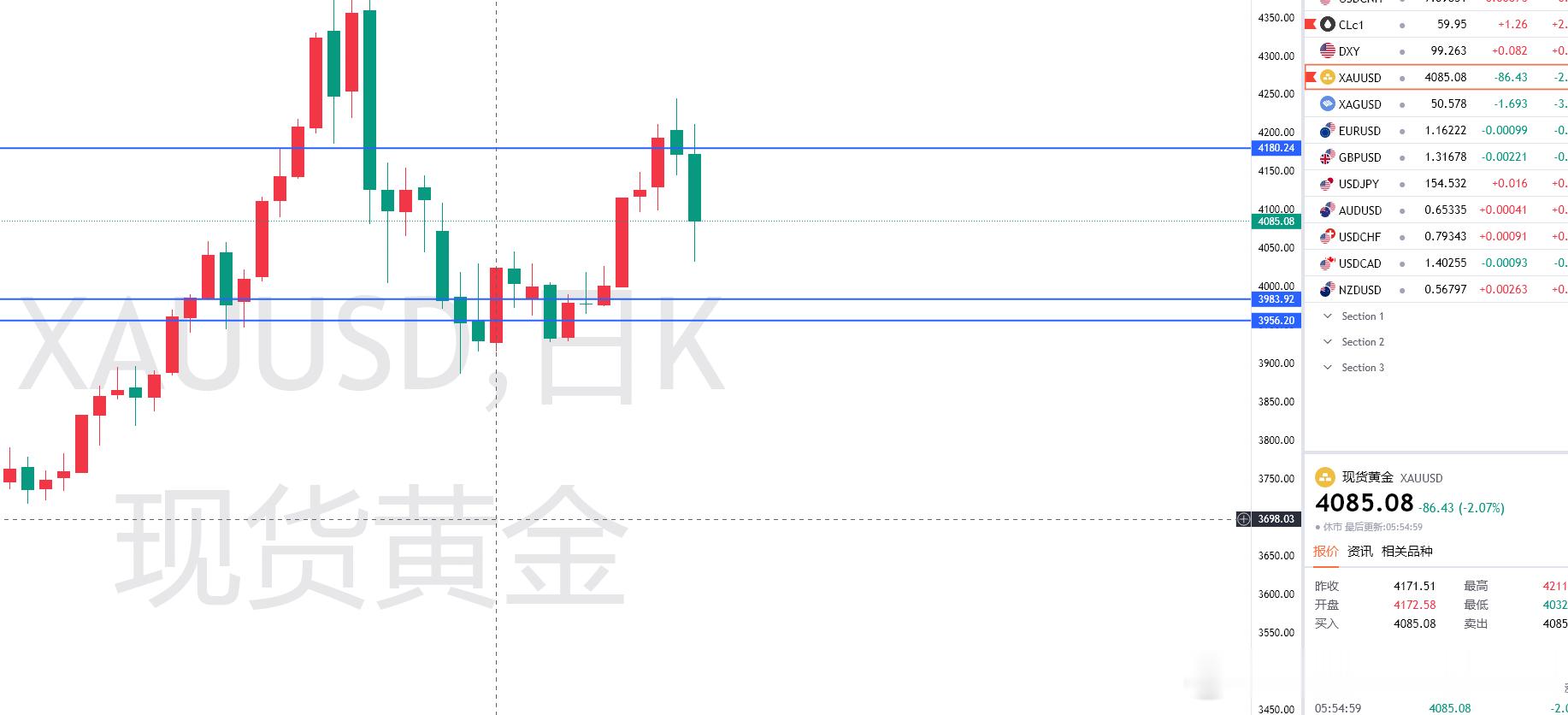黄金本周大起大落,前半周大涨,后两天受消息面影响几乎跌回原点,周线收长上影阳线。下周倾向高空操作,阻力本周高点,支撑4000整数关口,这个位置不破,可能暂时继续震荡。一旦有效下破,先看3930以及前低3887附近。如果按照日线一比一,下方目标大概在3756附近。日线昨天早盘强势拉升至4211附近受阻回落,受停摆结束影响,晚间大跌至4032附近,差不多180美金,日线最终收阴。按照目前走势,周一应该继续看空。日线阻力4167附近,下周如果有机会反弹这里理想的做空位置。不过凌晨反弹高点在4111附近,行情要想下跌大概率会在其下方运行。小时线在4098附近,周一这个位置不破可以做空。下方目标先看4075-4055附近,下破看4032-4000附近。 4000整数关口附近不破做多,跌破反弹找机会再空。