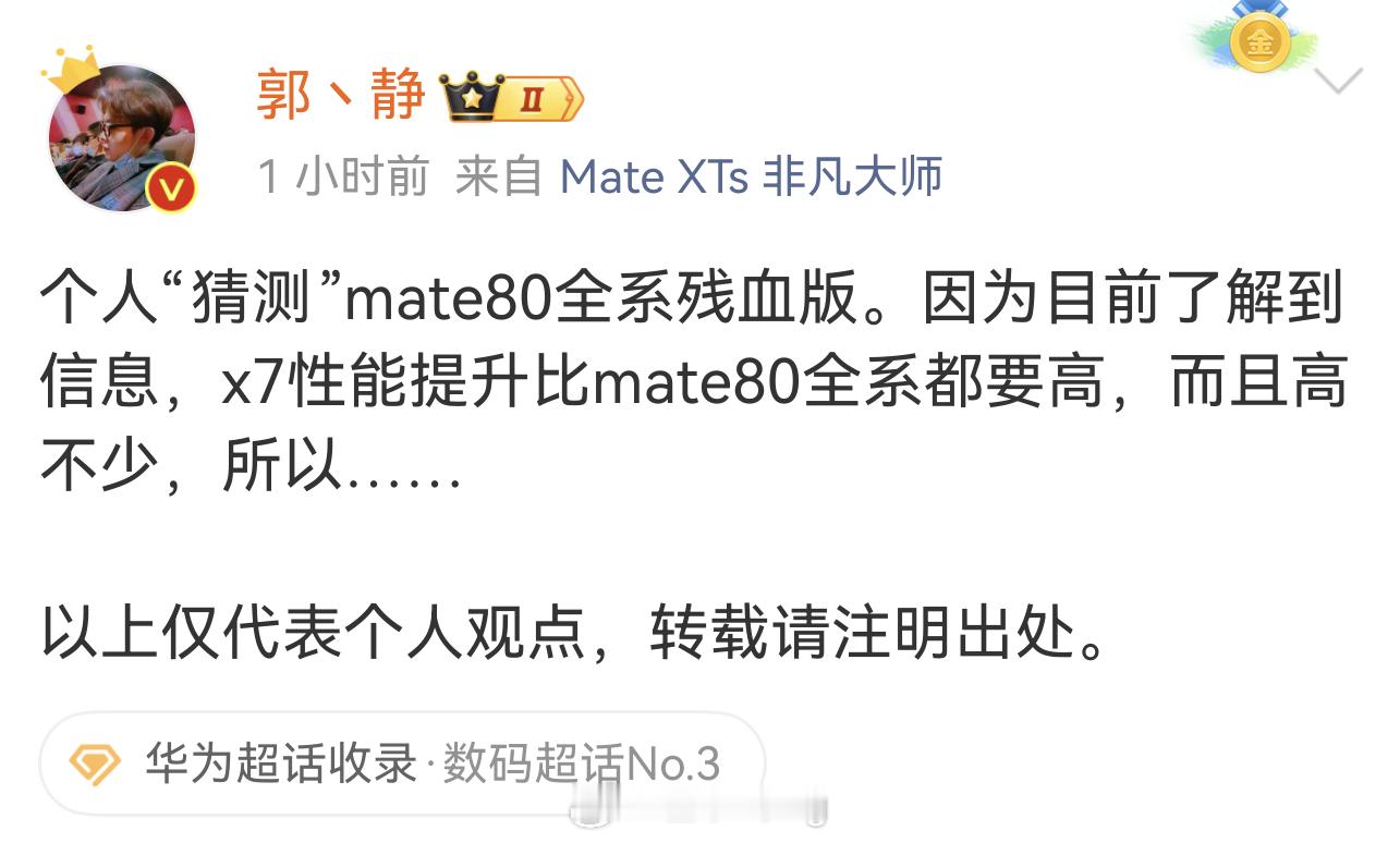 看看静哥 发的,我也说说自己的观点,9030其实分等级很正常。至于为啥直板机是残血,折叠机是满血呢,因为这两种机器完全是两种形态,都是为了软硬件更好的结合,甚至我斗胆说一句,9030残血版的直板机和9030满血版的折叠机日常使用应该是一样的。我认为不同的两种形态对应不同的芯片感觉挺好,这也是自主可控的优势所在,你也可以看看苹果,而且这也说明华子的芯片设计更上一层楼了,应该可喜可贺。至于标准版还给9020?确实该骂,我也说过这代分级很严格。。。