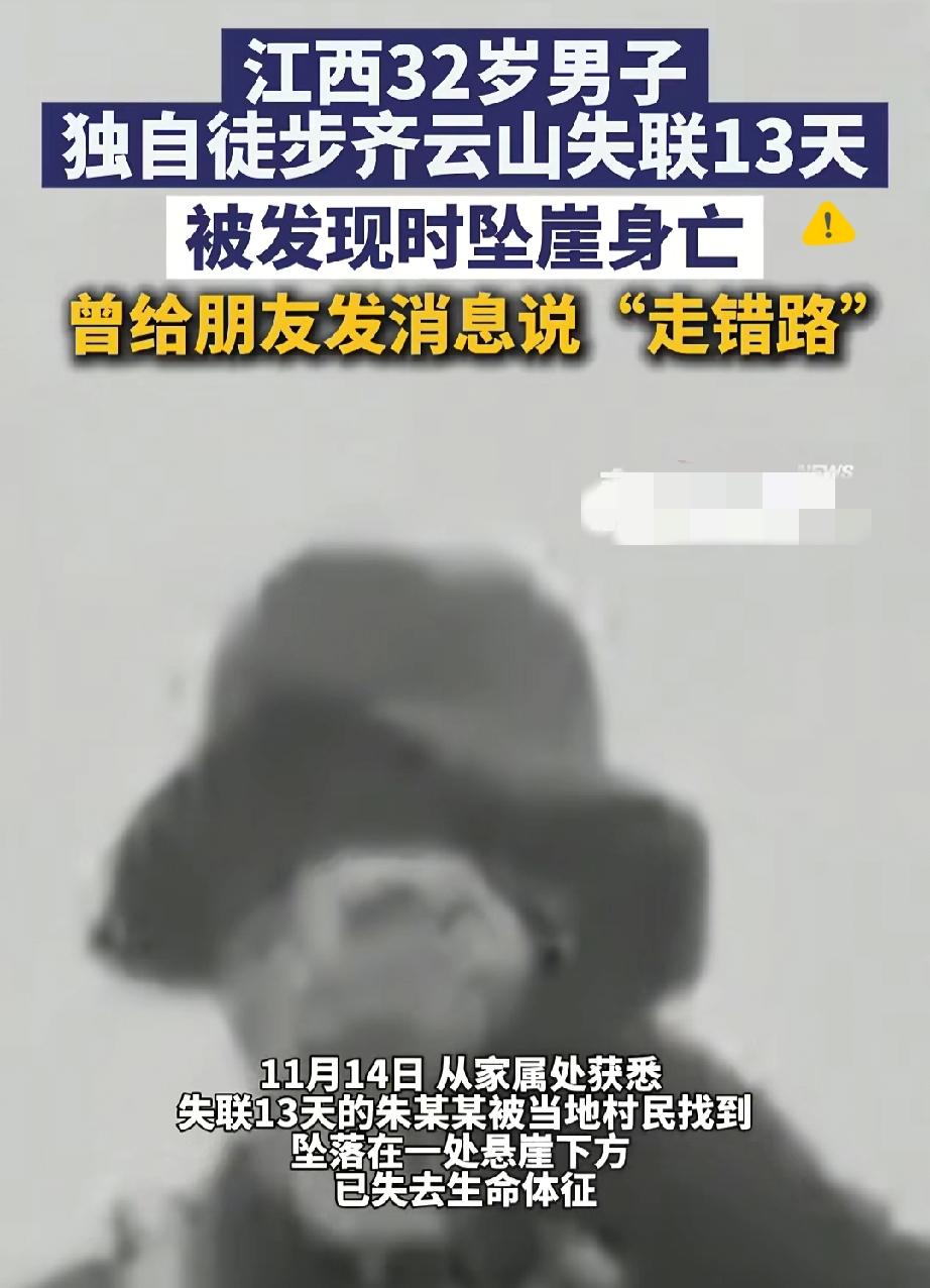 14天的揪心等待,终究没等来奇迹! 32岁男子独自徒步齐云山失联后,被猎户带着猎犬在悬崖处找到,却早已没了生命体征。 没人能想到,一段本是放松的徒步,会以这样的方式落幕。 他走错路后踏入未开发区域,那里岔路多、没信号,连有经验的徒步者都不敢轻易去,再加上连日阴雨大雾,搜救难度直接拉满。 其实这场悲剧真的该给所有户外爱好者提个醒:探险不是逞强,未开发区域的危险从来都藏在“看似不远”的距离里。 哪怕装备再全,经验再足,也敌不过突发的意外和复杂的地形。 悬赏10万搜救、两省联合搜寻,所有人都在尽力,可生命还是没能留住。 你觉得户外徒步该如何平衡探索欲和安全感?评论区说说你的看法~