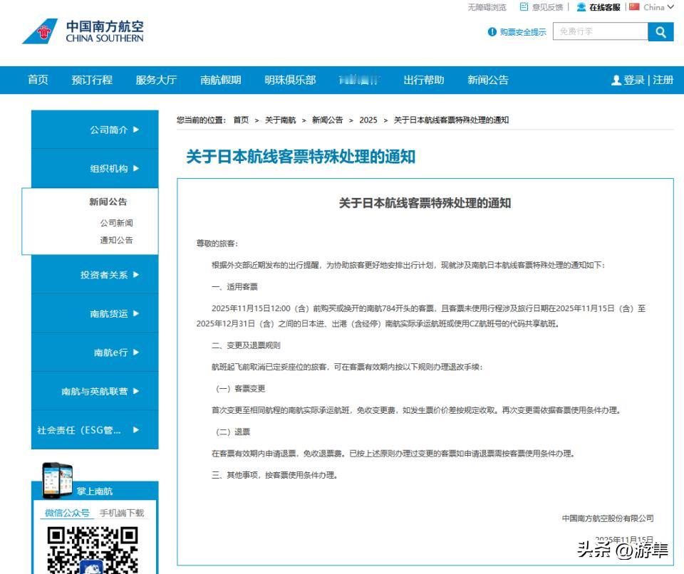 【紧急通知!国航、南航、东航宣布:日本机票可免费退改!】 正在看日本攻略的你,注意了!国航、南航、东航三大航司刚刚同步发布紧急通知:即日起,凡购买2025年11月15日至12月31日期间赴日机票的旅客,符合条件即可享受免费退票或免费变更!这不是谣言,是官方公告!受近期安全形势影响,外交部已提醒中国公民暂勿前往日本。三大航司迅速响应,为已购票旅客开通绿色通道。国航、南航、东航均明确,11月15日12点前购买的机票,只要行程涉及日本且未使用,在规定时间内申请,退改均免手续费!想退就退,想改就改,无需理由!建议旅客第一时间通过原购票渠道或航司客服办理。安全无小事,国家在行动,航司在跟进,大家出行务必把安全放在第一位!