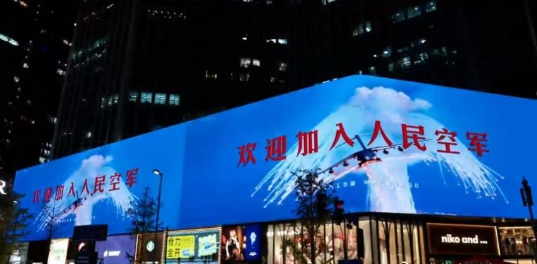 人民空军的风采在春熙路绽放!战机编队与3D巨幕联动,每一个画面都充满力量,让人深