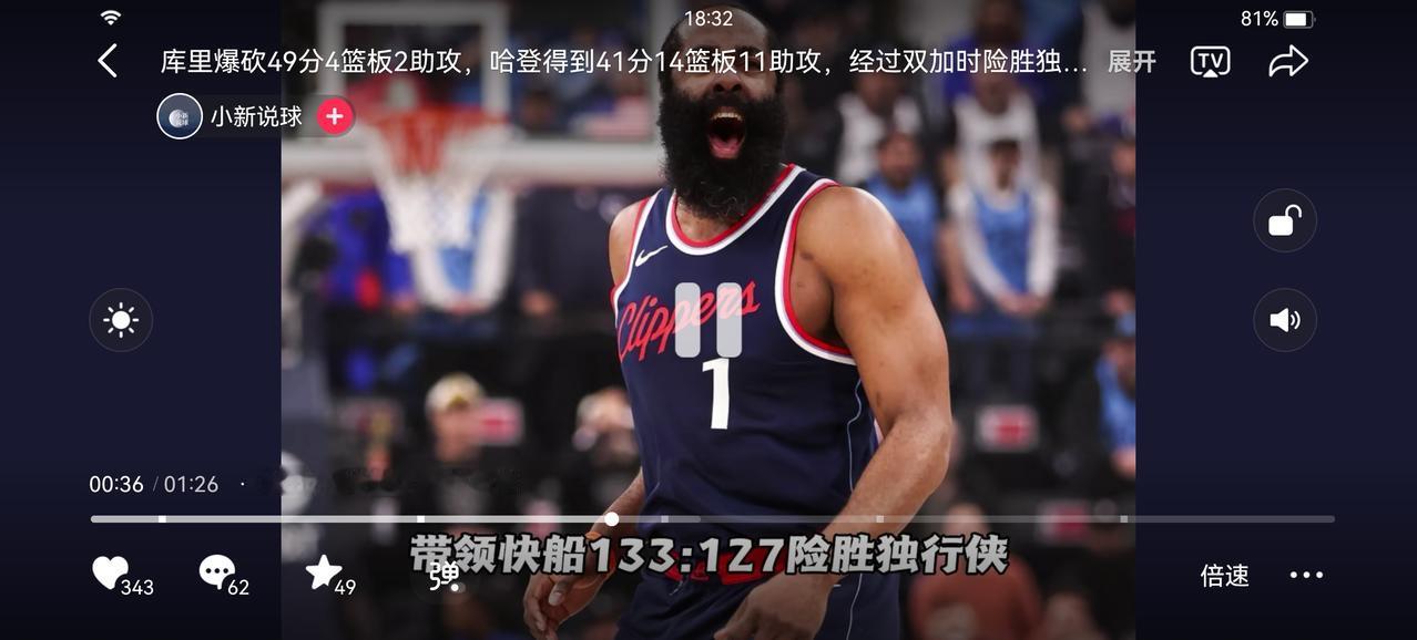 哈登带队,快船双加时133:127力克独行侠,结束6连败。 快船取胜的功臣当属哈登。加时赛阶段哈登连续的三分和犀利的突破,帮助快船紧咬反超比分,最终通过双加时战胜独行侠,终止了连败的势头。 哈登全场贡献了41分14篮板11助攻的三双成绩,成为本场的MVP。