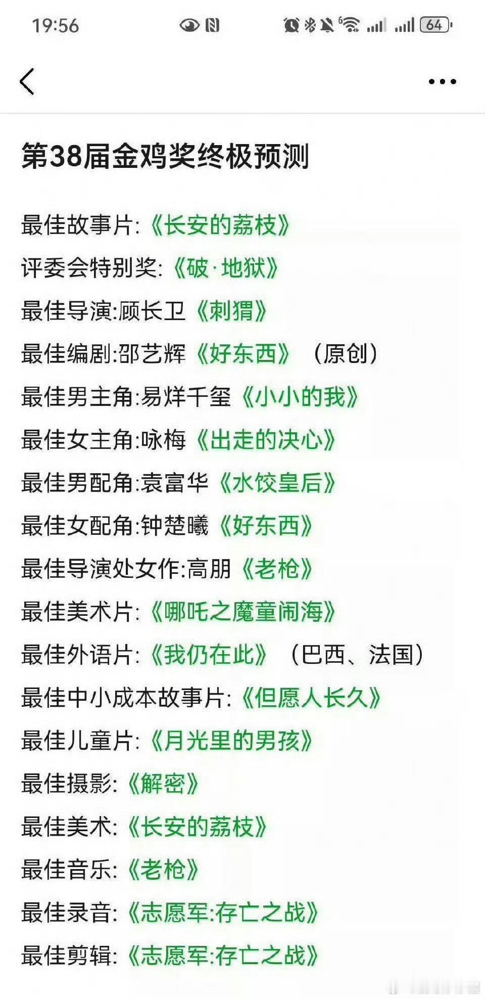网友爆料的男女主角/配角🍉——最佳男主角(影帝):易烊千玺,最佳女主角(影后) :段奥娟or咏梅,目前男女配角都爆对了(袁富华、钟楚曦)