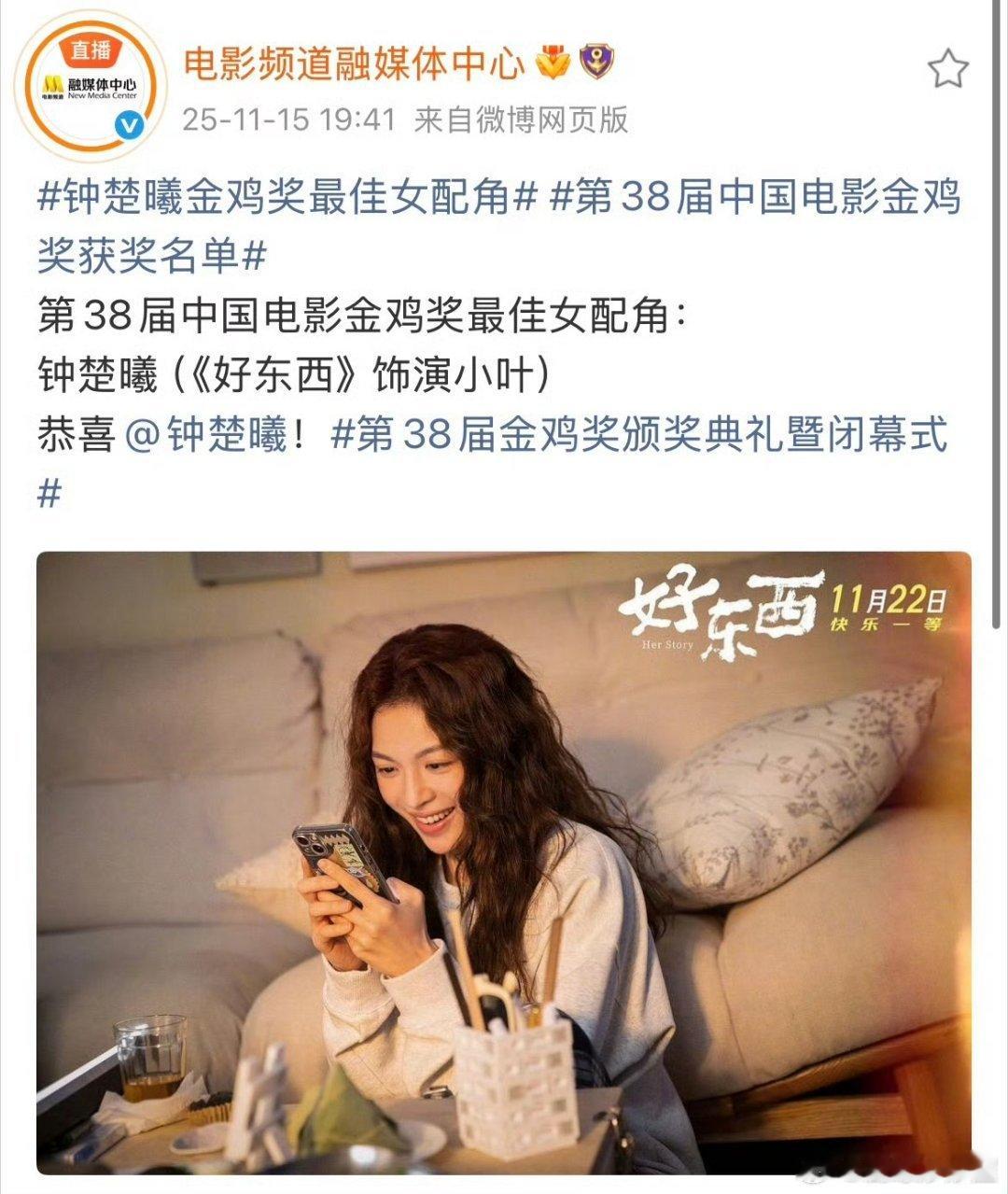 金鸡最佳女配:钟楚曦实绩有了,这次可以站C了小叶! 网友说刘冲总是买股失败,战绩🈶:辛芷蕾镶边儿封面,结果去威尼斯拿了影后钟楚曦被🐴抢c,结果金鸡拿了最佳女配