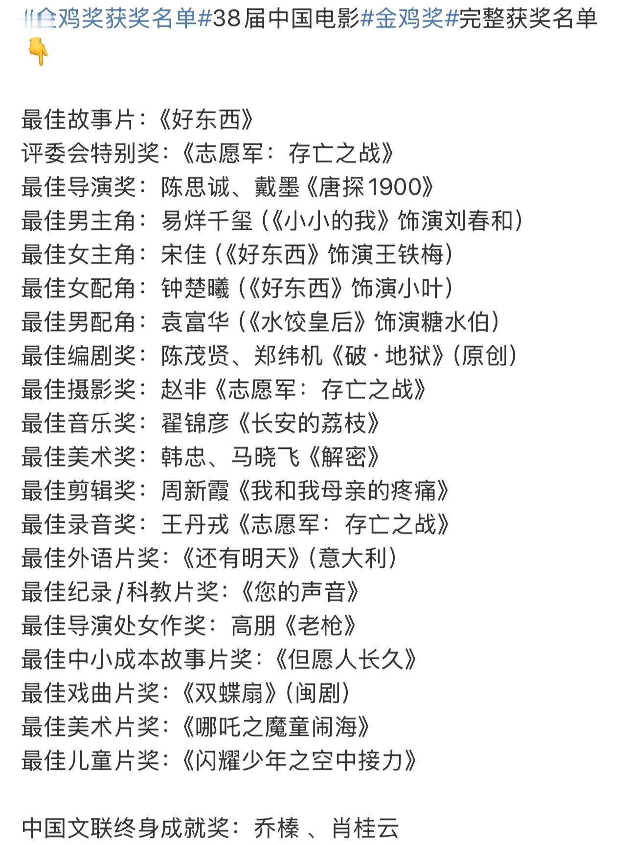 金鸡获奖名单出来了!!!《好东西》成最大赢家