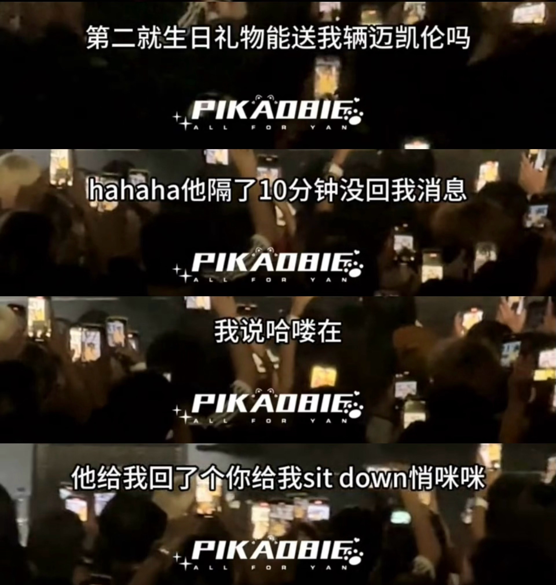 浩翔:“你想要什么生日礼物吗”:“能送我辆迈凯轮吗”(迈凯轮的梗):“哈喽在”浩翔:“你给我sit down悄咪咪”(ybr的歌)是我们超有梗有特别特别好的严导啊