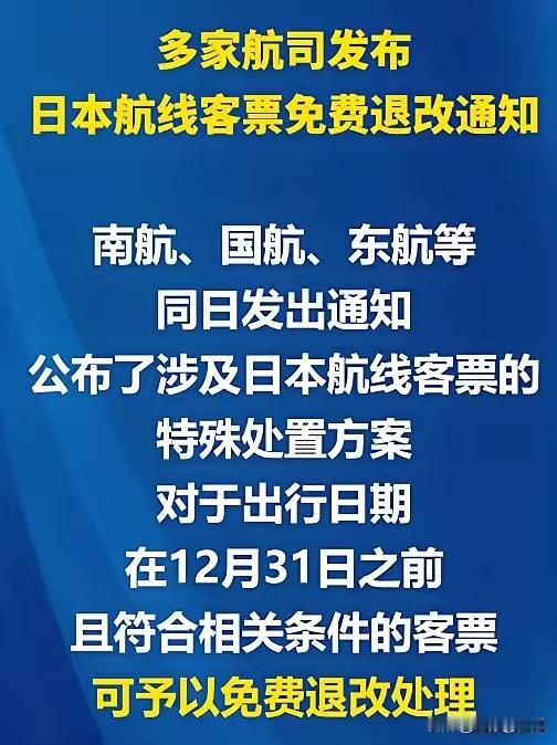 什么信号,多家航司宣布出发日期在12月31日之前的赴日航线均可免费退改! 要对小日子动手了吗?航空改签 机票退订 飞猪机票退票 机票退机票 机票退票 机票退订攻略 深圳航空退票