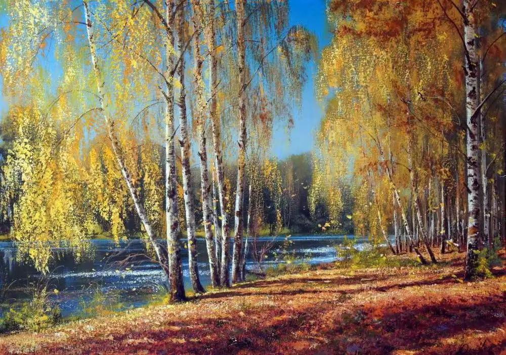 尤什科维奇的秋季油画美的不要不要的!油画欣赏带你走进画里原创油画色彩收集者