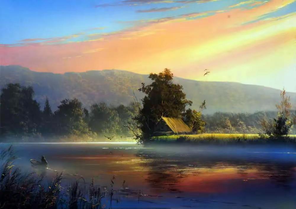 诗与远方就在这里 精美壁纸 油画欣赏 落日余晖映晚霞一抹夕阳美如画 带你走进画里