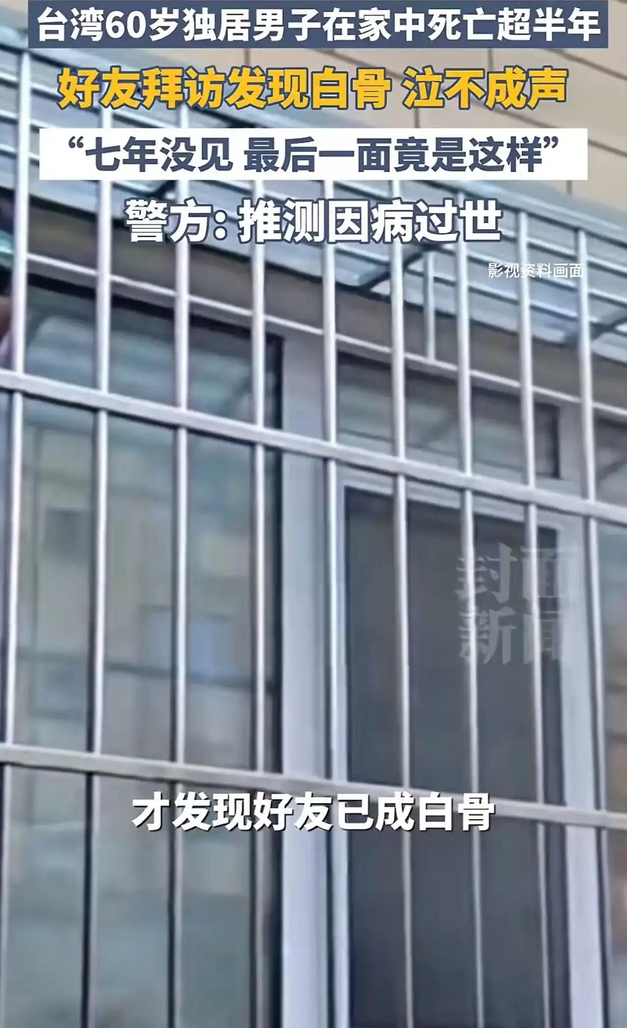 七年断联后的一场噩梦,揭开独居悲剧 台湾icon男子陈某,在某个平常的夜晚,被一个诡异的梦搅得心神不宁。梦里,7年未曾联系的好友赖某身影若隐若现,那熟悉又有些陌生的面容,在梦境中不断浮现,像一块石头投入他平静的心湖,泛起层层思念的涟漪。 醒来后,陈某满心都是对老友的牵挂,再也按捺不住,决定去见见这位阔别已久的好友。第二天,他精心挑选了伴手礼,怀揣着期待与忐忑,来到赖某家。 他轻轻敲了敲门,嘴里还热情地喊着:“老赖,我来看你啦!”可大门纹丝不动,他又加大了敲门的力度,依旧没有任何回应。陈某心里“咯噔”一下,赶紧掏出手机拨通赖某电话,电话那头却只有冰冷的忙音。 一种不祥的预感涌上心头,他踮起脚尖,透过窗户往屋里看去。这一眼,差点把他吓得魂飞魄散——好友赖某卧倒在地,早已变成一具白骨。陈某双腿发软,强忍着恐惧和悲痛,颤抖着拨通了报警电话。 警方很快赶到现场,经过勘查和推断,推测赖某是因病过世,且死亡时间已超过半年。邻居们听闻此事,都震惊不已。原来,60岁的赖某一直独居,生前是个活泼外向的人,和大家相处融洽,只是因工作常不在家,才让这次不幸发生后许久都无人察觉。 陈某坐在路边护栏上,整个人仿佛被抽走了灵魂,埋头痛哭。他的哭声里,有对老友突然离世的悲痛,有对自己没能早点来看望的愧疚,更有对生命无常的无奈与感慨。这起悲剧,就像一记警钟,敲响了人们对独居生活风险的警觉。频繁梦到一个人