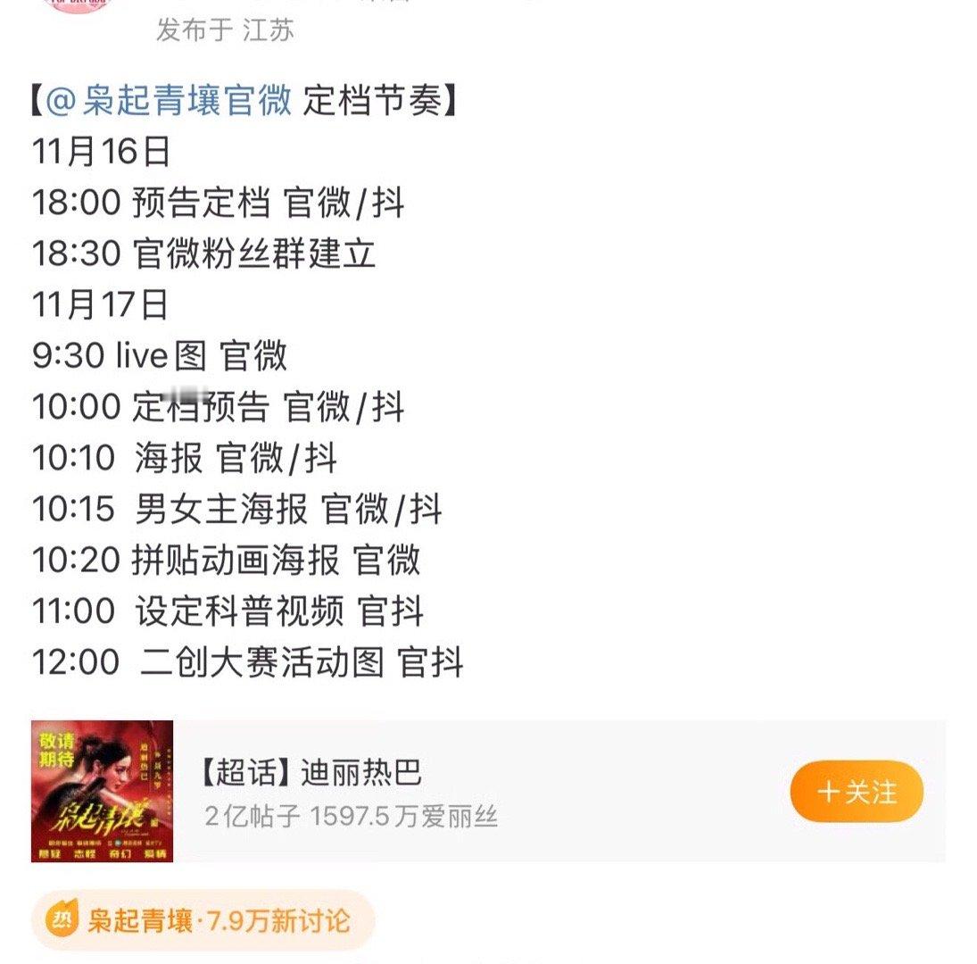 迪丽热巴陈星旭《枭起青壤》明天就要定档啦