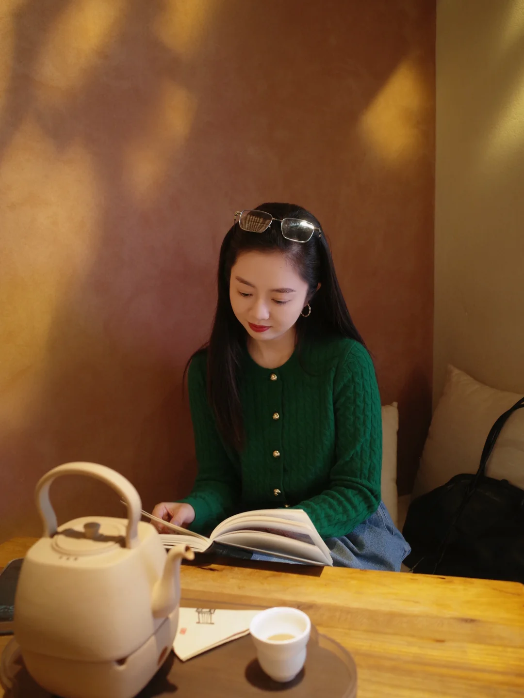 绿色明艳又沉静的色调 仿佛把十一二月的温柔和力量都穿在了身上 不必多言 静静坐着就是一道风景 在光与影之间 此刻就是永恒 · 又是阅读时间 幸福感拉满 📖 · 🍊毛衣安排在11.22的啵啵间 【点击预约⬇️开播前会收到提醒🔔】