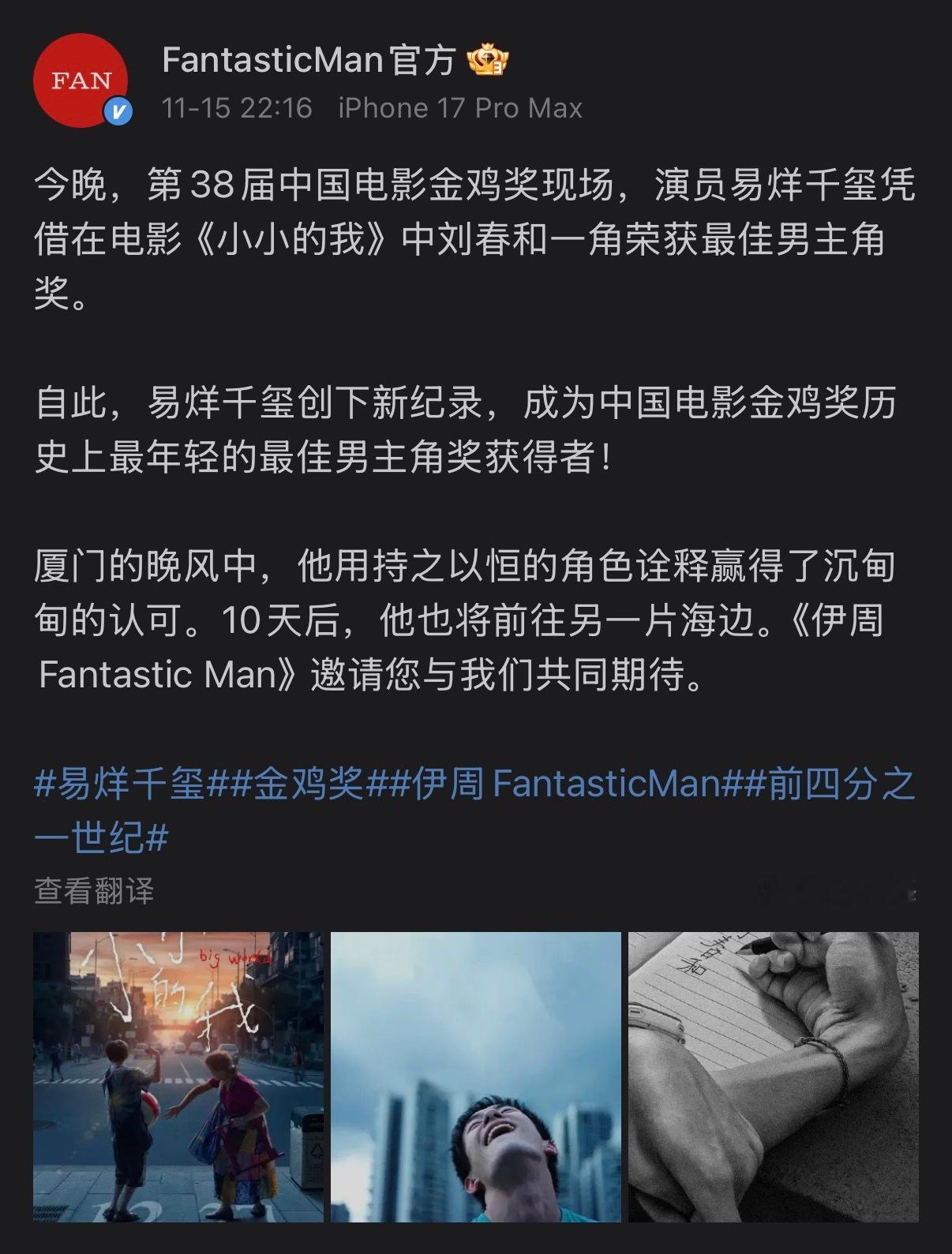 易烊千玺 | 伊周Fantastic Man Nov & Dec 2025 千玺在拿下金鸡影帝创造历史新纪录后的第一本杂志也紧跟发布预告信息 ,即将出镜中文版 Fantastic Man 闭年合刊封面 ,作为仕道嘉人集团的第一本男刊杂志 ,其出自荷兰阿姆斯特丹的半年刊男士时尚独立刊物《Fantastic Man》 ,于 2005 年推出 ,今年亦是母版创刊二十年意义节点下扩张的全新版图市场 ,以深度的人物访谈著称 ,是一本具备人文基调气质的时尚杂志。同时该集团旗下也还有 W Magazine 和嘉人两本主流大刊 ,可以说都是千玺的老朋友了 ,也期待这一次的全新合作 ~