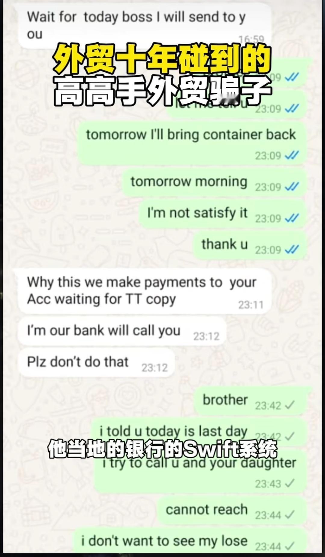 外贸老手巧破非洲“土耳其”骗局。 (如图所示)一位外贸老手哥讲述自己怎样,巧破非洲的“土耳其”外贸骗局。简单来说,就是外国骗子用少量定金,一般20%的货款,诱骗国内厂家用集装箱发货,集装箱到港后拖着不付款、不提货,等着海关拍卖,然后在低价吃进。外贸老哥的经验就是:保留好对方违约的各种证据,保留好对货柜的控制权。