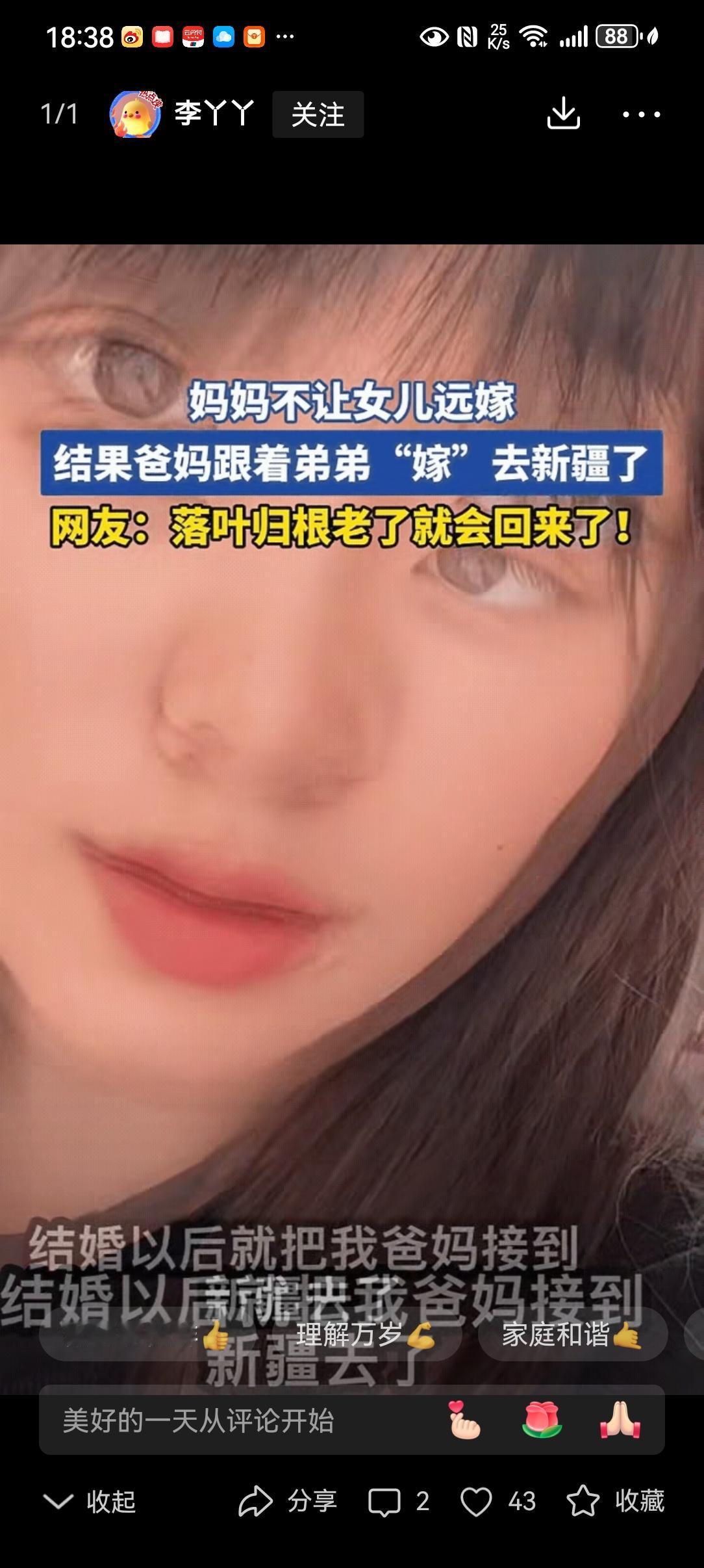 “太扎心了!”山西一名女子由于父母不让远嫁,于是选择嫁给了本村的一个男的,日子过得平淡却也踏实。 原以为守住了家人,谁料弟弟长大后,迷上了一位新疆姑娘。父母拍着胸脯支持,说年轻人该闯闯,还主动帮着筹备婚事。 弟弟婚后举家迁去新疆,老两口转头就收拾行李,说要去帮着带孙子,一去就是好几年。 姑娘站在空荡荡的院子里,看着自己守了多年的“家”,突然笑了——她没远嫁,家人倒先“远走”了,留她一个人守着老宅子。 网友说:这世上最没谱的,就是父母嘴里的“为你好”。当初拦着你,转头就纵容别人。 也有人叹:她守着根,根却挪了窝,这比远嫁还让人寒心。 其实父母未必是偏心,只是世事难料。只是姑娘这份委屈,怕不是一句“落叶归根”就能抹平的。 你觉得姑娘该主动去新疆团圆,还是守着老家等父母回来?