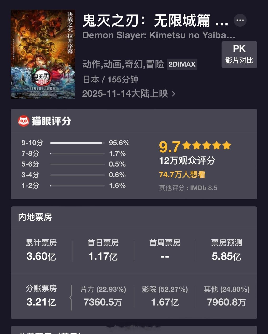 《鬼灭之刃》第一部全球票房已经超过《哪吒一》,不同的是《鬼灭之刃》更多的是靠国外