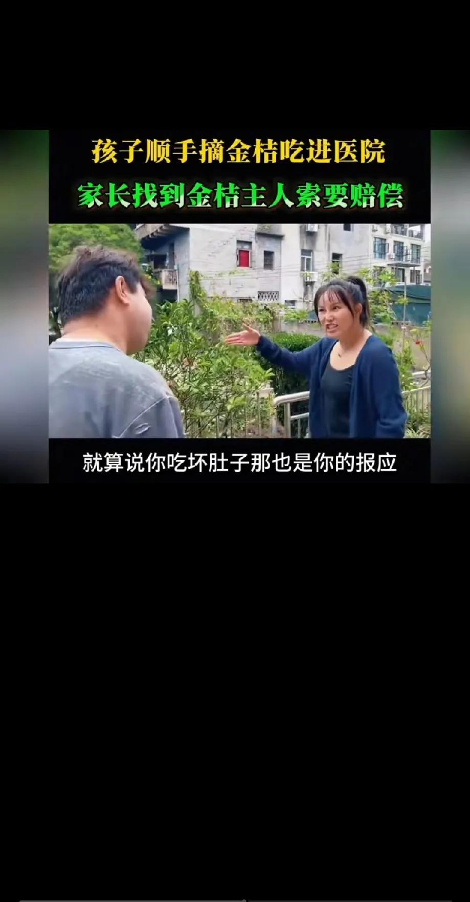 前几天发生了一件令人气愤的事情,王大姐家里有一棵金桔树,结了很多金桔。 王大姐把金桔放在路边上,准备让过路的人顺便摘一些。没想到邻居家那两个孩子却偷王大姐家的金桔,王大姐不知道这件事,还是把金桔放在路边上,结果那两个孩子把王大姐家所有的金桔都摘了。 王大姐生气,告诉孩子们不能随便摘别人的东西,要尊重别人的劳动果实。过了一段时间,这两个孩子把王大姐家的金桔都摘了,也把王大姐家的金桔树打了农药。 不过这两个孩子摘了王大姐家的金桔也不算亏,因为王大姐把金桔放在路边上就是让人摘的嘛。 可是这两个孩子怎么这么傻,把王大姐家的金桔树打了农药,应该是不想再吃王大姐家的金桔了,那就不用摘嘛。 可这两个孩子偏偏不听,还是去摘王大姐家的金桔,结果这次吃了王大姐家的金桔入院了。 本来这件事应该好好道歉的,可是这两个孩子的家长却不这样认为,他们认为王大姐家的金桔放在路边就是顺手摘,他们为什么不能摘呢? 明明是他们家孩子先摘的,后来又打了农药,是他们家监护不力,居然还反过来指责王大姐。这两个家长真是无理取闹,把不理取闹当做保护孩子的方式。 后来警察来了,把事情调查清楚后,说:“王大姐家的院子有栅栏,孩子翻进来摘果子属于偷摘,王大姐家的果子放在路边属于顺手摘,这两种情况都不算是损失,真正的问题是家长没有看好自己的孩子,让他翻进别人家院子里偷摘果子。” 听了警察的话,我心里也有些不舒服。明明是两个孩子的家长没有看好自己的孩子,居然还反过来指责别人,不知道这两个家长是什么想法? 不管怎么说,以后还是要看好自家的东西,不要随便放在路边上,以免招惹是非。 麻烦看官老爷们右上角点击一下“关注”,既方便您进行讨论和分享,又能给您带来不一样的参与感,感谢您的支持!