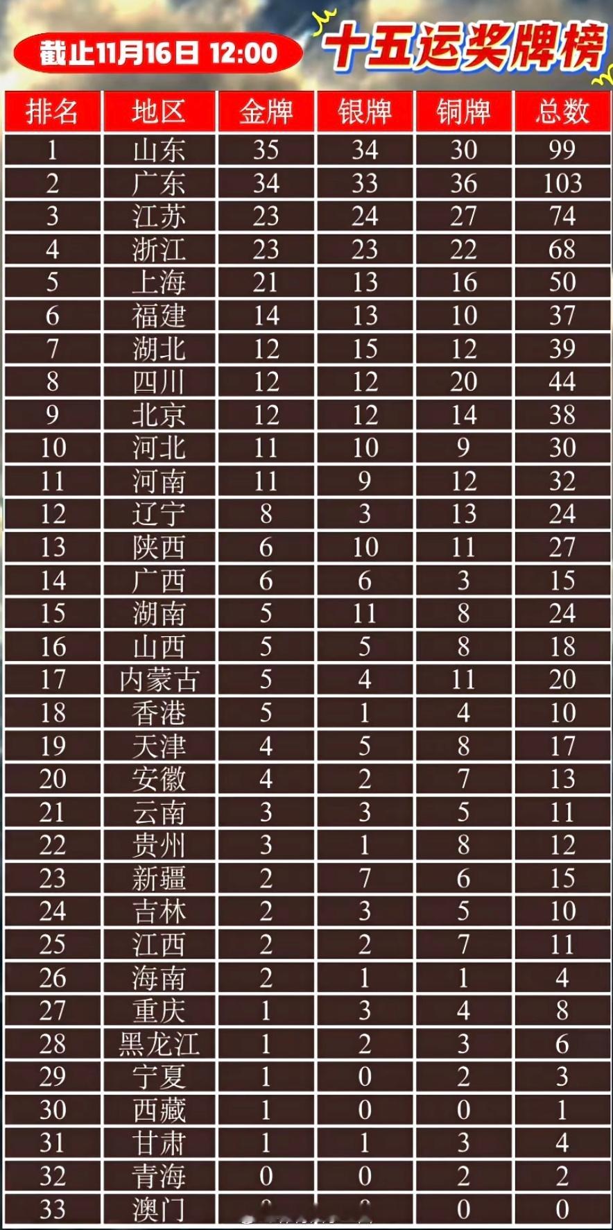 山东队金牌榜和奖牌榜都遥遥领先🥇🥈🥉