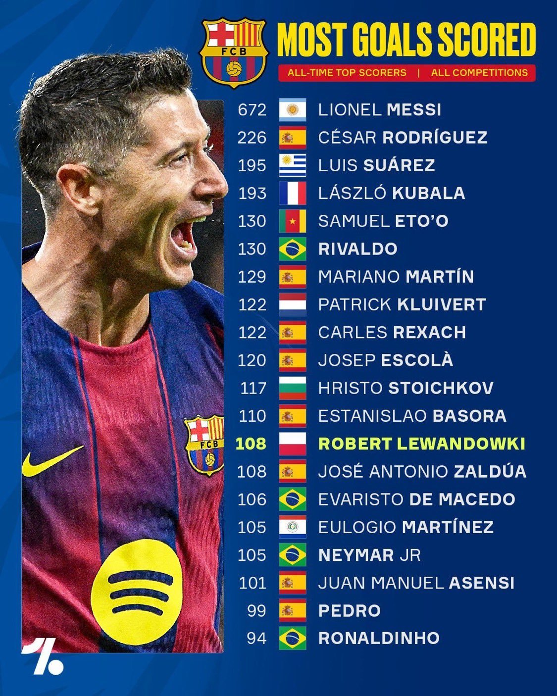 莱万多夫斯基距离巴萨历史射手榜前十只差12球,能否在本赛季结束前超越埃托奥成为队