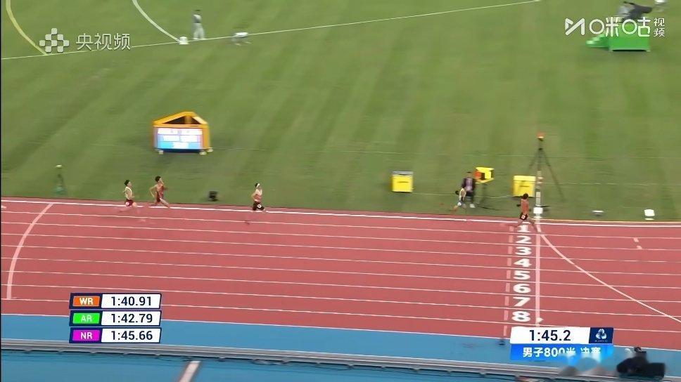 看了一下回放,真的太强了!1分08秒的时候还在第5,1分18秒追到第4,1分32秒追到第3,1分39秒追到第2,最后时刻反超刘德助,1分45秒48!打破了刘德助保持的男子800米全国纪录!这恐怖的后程加速能力,感觉他还有很大的进步空间啊!