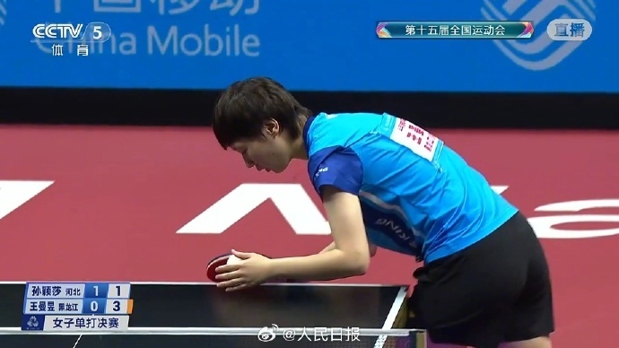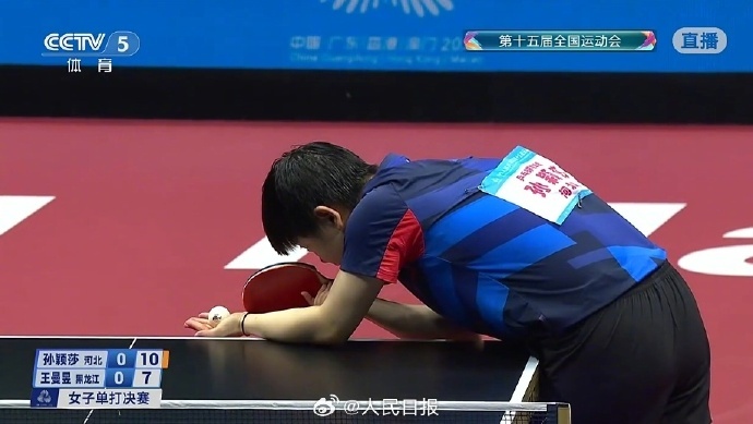 【】 11月16日晚,十五运会乒乓球项目在澳门银河综艺馆展开女单决赛争夺。刚刚,黑龙江队选手王曼昱以4∶2战胜河北队选手孙颖莎,夺得冠军。王曼昱成为全运会历史上继焦志敏、邓亚萍、张怡宁之后,又一位在乒乓球女单项目上实现卫冕的选手。孙颖莎获得亚军。(人民日报)
