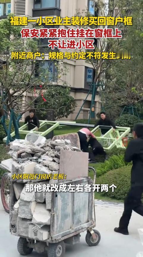 抱窗被抬进楼?物业的“硬核”阻拦 “太尽职了!”11月13日,福建福州,一业主为了方便房子通风。 当天上午九点多,福州仓山区闽江湾小区的楼下,一辆货车刚停下,几个工人就开始卸铝合金窗户,银灰色的窗框格外显眼,跟小区统一的深棕色完全不一样。 正在巡逻的物业保安陈师傅一眼就看出了问题,他赶紧跑过去,手里还攥着小区的《业主临时管理规约》:“先生,这窗户规格不对啊,咱们小区有统一标准。” 业主林先生正指挥工人搬窗户,听到这话皱起了眉:“我家18楼西晒,原装窗户通风差,我特意订了这种大开启扇的,跟物业有啥关系?” 陈师傅翻开规约第12条,指着上面的黑体字:“您看,这里写着门窗需采用70系列断桥铝,颜色深棕,抗风等级不低于9级,福州台风多,这都是为了安全。” 林先生却摆了摆手,招呼工人继续搬:“我花钱买的房子,想换个舒服的窗户还不行?出了问题我自己担着。” 陈师傅急了,他知道这小区去年台风天,就有业主私换的劣质窗户被吹变形,漏了一屋子水,最后还是物业帮忙抢修的,他冲上去张开胳膊拦住:“您先别搬,得先去物业办审批,符合标准才能装。” 林先生的火气也上来了,叫了四个工人一起动手:“别挡道,耽误了工期你赔得起吗?”工人们一使劲,窗户就往单元楼门口挪。 陈师傅眼看拦不住,脑子一热,直接扑上去抱住了窗框,双手死死扣住型材接缝:“今天我就不撒手了,安全规定不能破!” 这一下把林先生也惹毛了,他对工人喊:“别管他,连人带窗一起抬!”四个工人对视一眼,一人抬一个角,真就把抱着窗户的陈师傅抬了起来。 路过的邻居张阿姨吓得赶紧掏出手机录像,视频里陈师傅双脚离地,身体紧紧贴在窗户上,脸憋得通红,却始终没松开手,被一路抬进单元楼,顺着楼梯往上走。 “哎哟,这是要出人命啊!”张阿姨在后面追着喊,林先生却头也不回,直到把窗户抬到18楼家门口,才让工人停下,陈师傅这才被“放”下来,扶着墙大口喘气。 这段视频发到业主群后,立马炸了锅,有人说“陈师傅太拼了,这才是负责任”,也有人替林先生抱不平:“自家窗户凭啥不能换,物业管得太宽。” 小区物业经理很快赶过来,拿着《福州市居住建筑门窗工程技术规范》跟林先生沟通,指出他订的窗户抗风等级只有6级,根本扛不住福州的台风。 林先生这才有点犹豫,物业提出折中方案:帮他联系符合标准的厂家,定制同样大开启扇但抗风达标的窗户,差价由物业承担一部分。 陈师傅揉着发酸的胳膊说:“我不是跟业主过不去,去年台风天12楼的窗户被吹掉,差点砸到楼下的小孩,我真怕再出这种事。” 最后林先生同意退回窗户,按规范重新定制,他握着陈师傅的手说:“对不起,刚才太冲动了,没考虑到安全问题。” 你觉得物业这种“拼命阻拦”的方式值得吗?要是你遇到这种事,会怎么解决? 信息综合自《福州晚报》2025年11月14日《业主违规换窗,物业抱窗被抬进楼》报道、福州市仓山区闽江湾社区居委会通报及现场居民提供的视频资料。