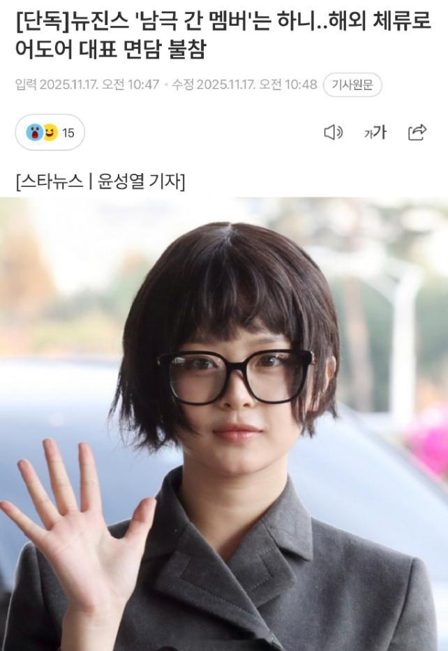 据17日采访结果,Hanni因为身处海外,未参加 11日进行的 ADOR代表李道京与 NewJeans成员们、以及监护人之间的面谈。据悉,当天的会面讨论了为回归所属公司所需的前提条件及要求事项等,而 Hanni以身处海外为由传达了无法出席的意向。原来去南极的是hanni?