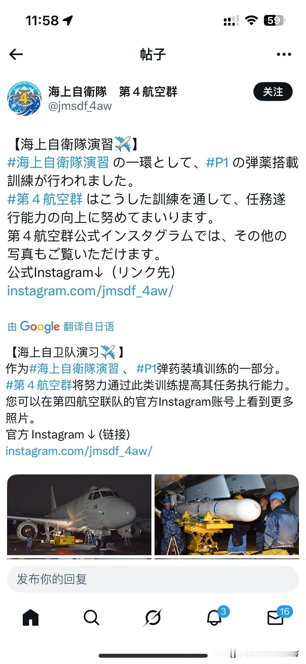 日本海上自卫队官方账号发文: 说正在训练弹药装填工作努力提升任务执行能力。 海上自卫队演习 作为海上自衛隊演習 、 P1弹药装填训练的一部分。