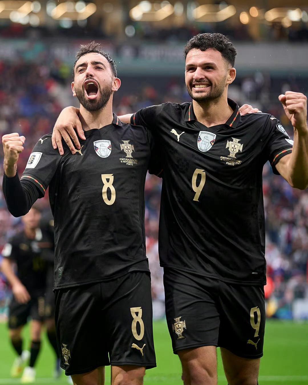 世预赛欧洲区小组赛F组第6轮较,葡萄牙主场迎战亚美尼亚,上场比赛因肘击染红的C罗本场缺阵。葡萄牙队最终9比1狂胜亚美尼亚锁定小组头名,连续7届晋级世界杯正赛。据统计,9比1的比分是葡萄牙队史第二大分差胜利,此前他们曾在2023年9月9比0大胜卢森堡。本场B费和若昂·内维斯均戴帽,这是葡萄牙队史第三次单场比赛有两人戴帽。本场获胜后,葡萄牙队直接晋级明年的美加墨世界杯,这是他们连续7届晋级世界杯正赛。葡萄牙晋级世界杯后,本场缺阵的C罗也在个人社交媒体上晒照庆祝,他写道:“我们进入世界杯啦!全力以赴,葡萄牙!”