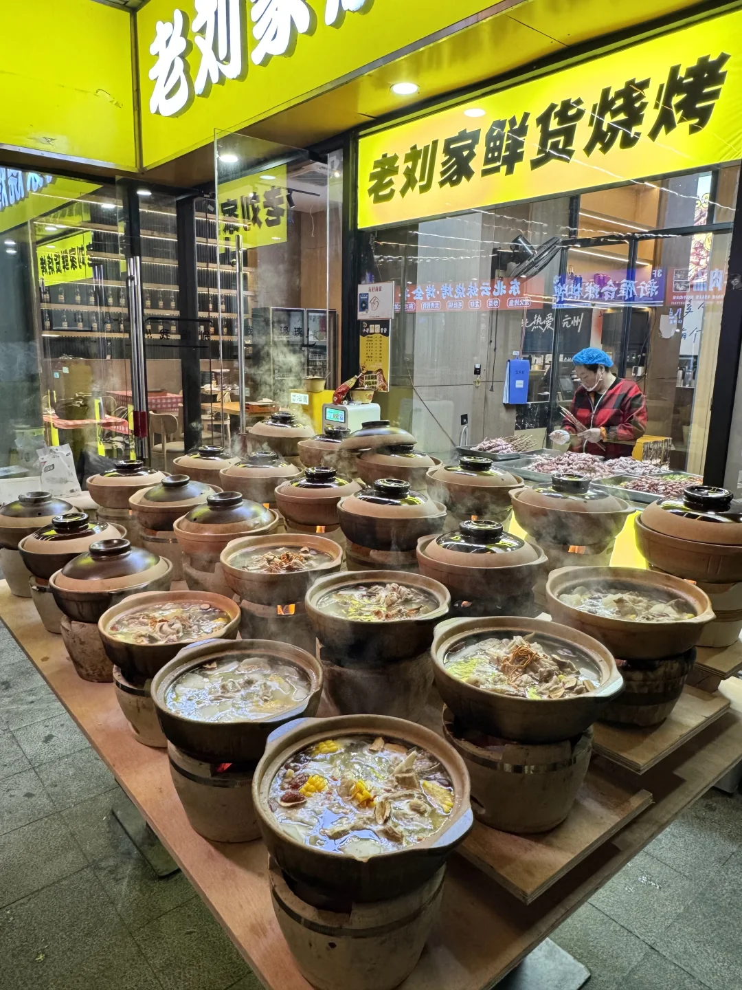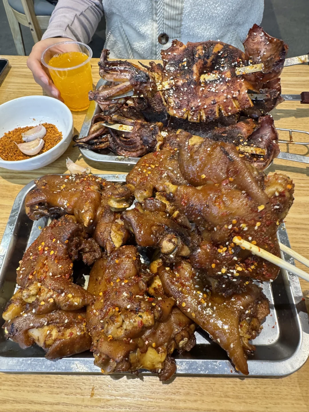 和朋友吃吃喝喝聊天吃串好惬意!! 圆滚滚的炭烤大鱿鱼,口感q弹,吼吼吃!! 店里的小烧烤闭眼点不出错!!猪蹄、鸡爪、猪脆骨都蛮有味的🤤 热气腾腾的羊肉炉,羊肉又嫩又香……简直了😭