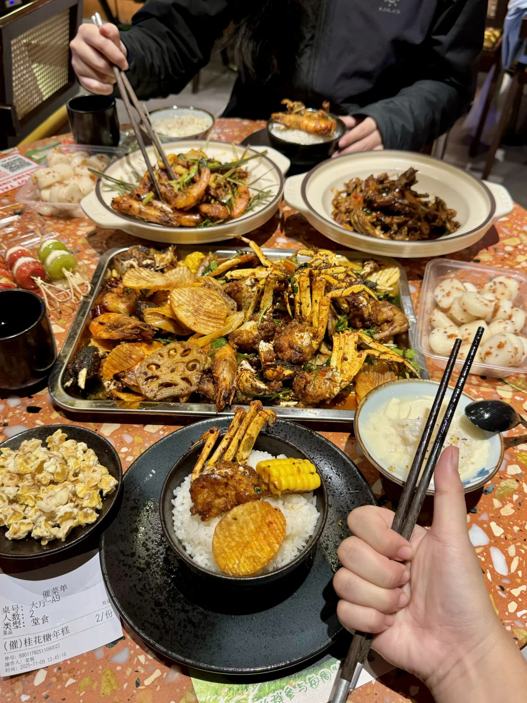 桂花年糕!香辣蟹!咸蛋黄鸡翅!! 好好吃🤤 ·