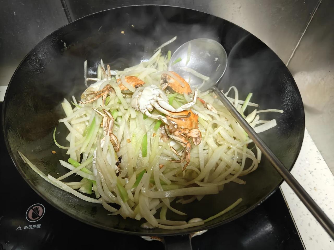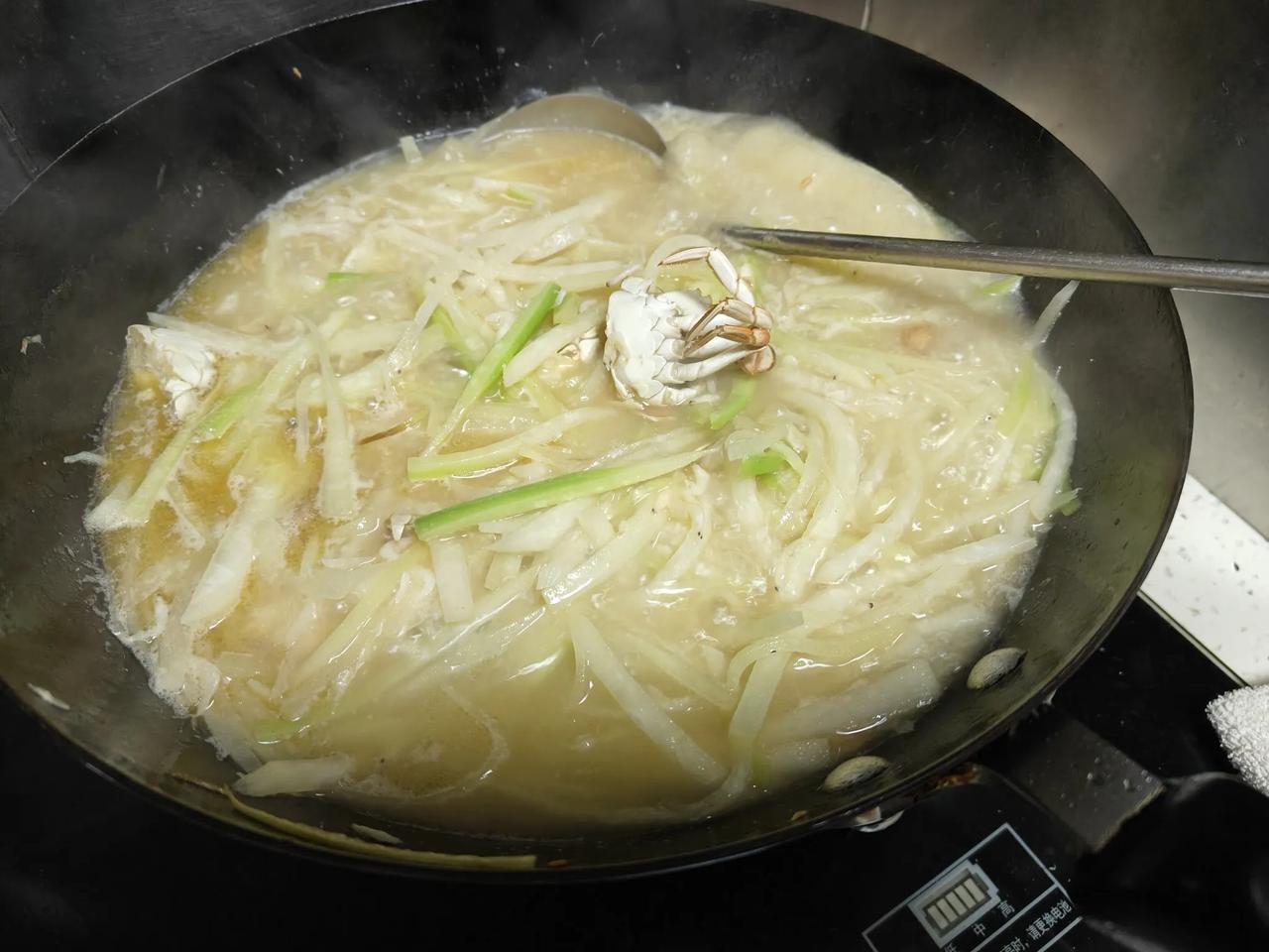 今天营口鲅鱼圈忽悠一下子降温了,前两天白天还16℃,暖融通的。今天咔嚓一下子,将至3℃了。 ​红海河结了层薄薄的冰,把枯萎的荷花黄叶子固定在了水面,一动不动了。 河心还是波光粼粼,水没有结冰,一只小野鸭子奋力的顺河游着,风从月亮湖公园海面吹过来,在双耳朵旁边呜呜的响。 ​今天营口鲅鱼圈算是表现出来冬天的样子,但是还没有北国的雪降落。没有雪就不像真正的冬天。 ​但是,可以穿皮夹克,可以穿羽绒服,可以穿御寒的衣裳了,让衣柜里久违的绵服,接触接触你的体温 这就是东北营口鲅鱼圈的好处。 ​营口企业家秦总两周前说,现在还不是螃蟹最肥的季节,再过两周肥到一个吃撑你。 ​我昨天花18 块钱买了两斤乒乓球那么大的本海小螃蟹,卖螃蟹的是一位40岁上下女人。 要是老太太或者老头,我不一定能驻足,她长瓜脸,不化妆,说,大爷我家那人儿,出海打的,各个满黄,她伸手抓一只揭开盖给我看。 我发现她左手无名指戴一个黄金戒指,她说,大爷看看满黄不?我说,再黄也没有你那戒指“黄”。她笑了。 ​姑娘,这戒指是结婚婆家给的三金之一吧? ​大爷啥都懂,我结婚是五金。 ​姑娘哪五金? 金​项链,金戒指,金镯子,金脚链,金耳环。 ​我说现在金子暴涨啊!姑娘发大了。 ​给大爷称二斤。 ​今天早上香煎小螃蟹孬(熬)的小螃蟹清萝卜汤。