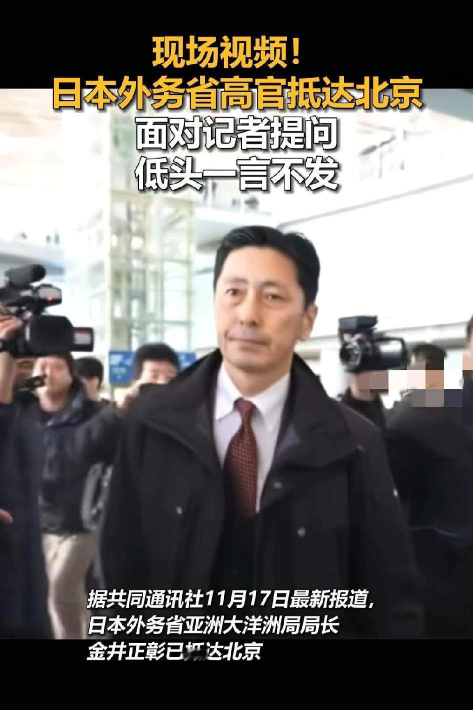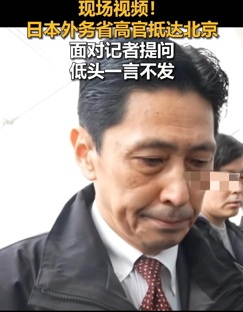 现场视频,日本外务省高官抵达北京面对记者提问,低头一言不发!干什么来了? 高市早苗不道歉,其他人来不用理会,耳听为虚,眼见为实。看他们怎么做。是不是来谈中国驻军权的?对二战后日本不能有进攻性武器提交联合国,派工作组驻日本进行调整取证,所有具有进攻型的武器立马销毁。