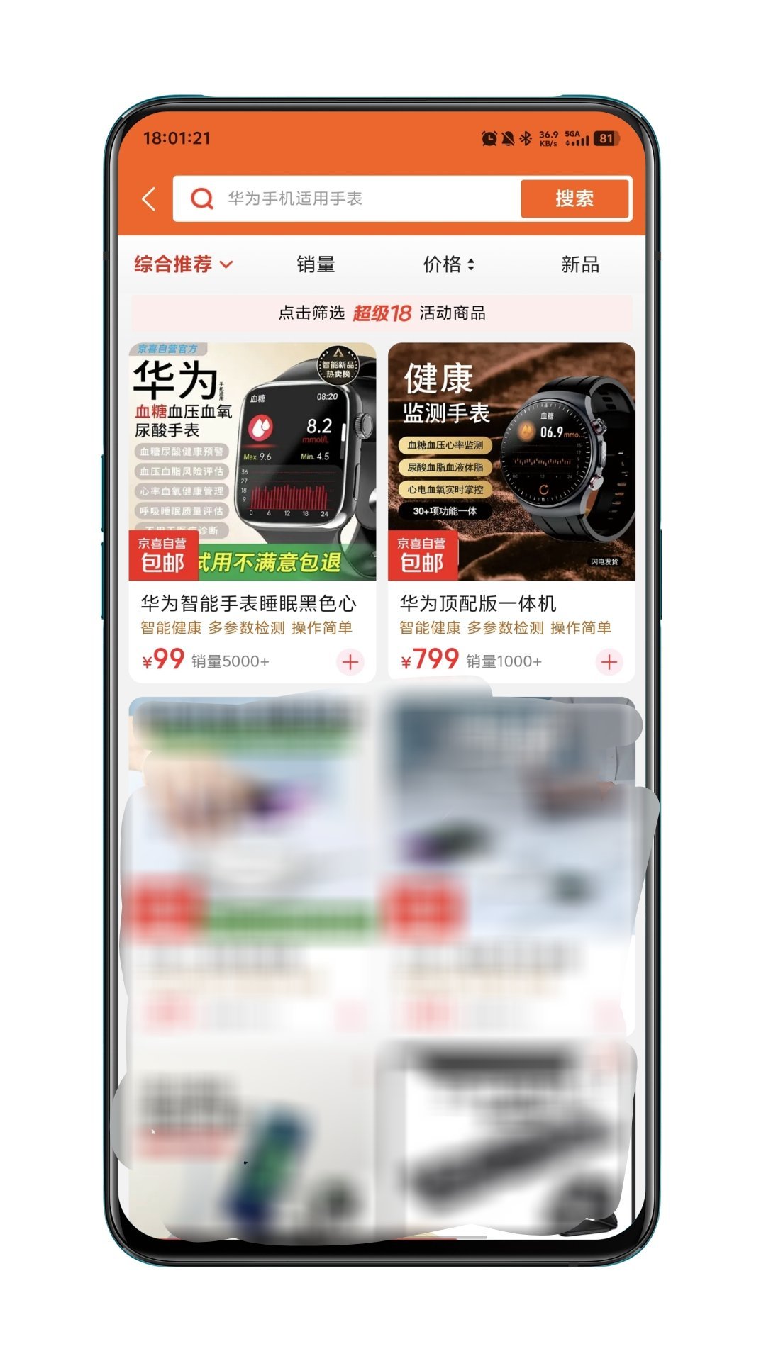 电商平台能不能加强下监管?我爸之前测血压的时候在高血压的临界值他也没跟我说想买个手表日常测一测血压(实际血压用手表测试很不准,他不知道)买电子手表这种事情应该相信京东对吧?进入京东一看“京喜自营官方店”京东旗下品牌,应该值得相信吧?一看好家伙“华为顶配版一体机”手表还能测血压测心率这不是就是我需要的手表嘛!我爸说这就是双11才这么便宜,抓紧就买了这周末回去看奶奶我爸就让我把手表跟手机配对一下一看这手表跟华为一点关系没有下载配对App就是让大学生做的App手表的表盘也是山寨味十足然后我让我爸把手表放在手腕注意就是放着!然后这样就可以测血压了!真的坑的不能再坑了。后来我看了下我爸购买记录一看产品实际名称:华为手机适用血糖血压监测手表智能手表测血脂心率一体机运动手环 顶配版健康手表【测血糖血氧尿酸心率睡眠一体机】|京东快递 更快更好结果搜索界面显示的是“华为…”这是平台跟商家一起坑蒙拐骗老年人吗?要是老人真的相信这个测的数据一直觉得血压没问题是不是你们平台也有责任? 赶紧整改吧!口碑要被玩坏了!!!