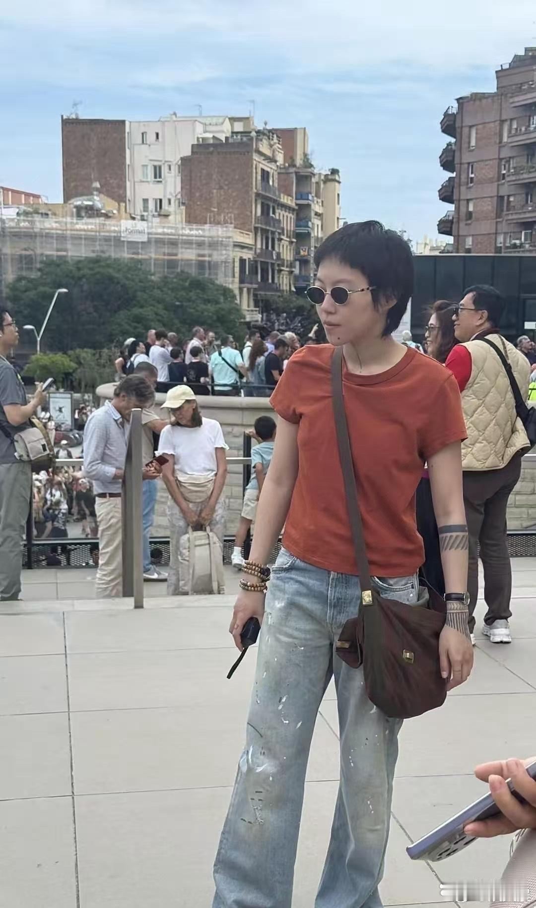 窦靖童在西班牙街头逛街的画面好吸睛!留着利落的短发,手上5串手链叠戴超有个性,眉眼间和举手投足都像极了王菲。如今28岁的她,无恋爱绯闻、单身自在,活成了随性洒脱的模样~