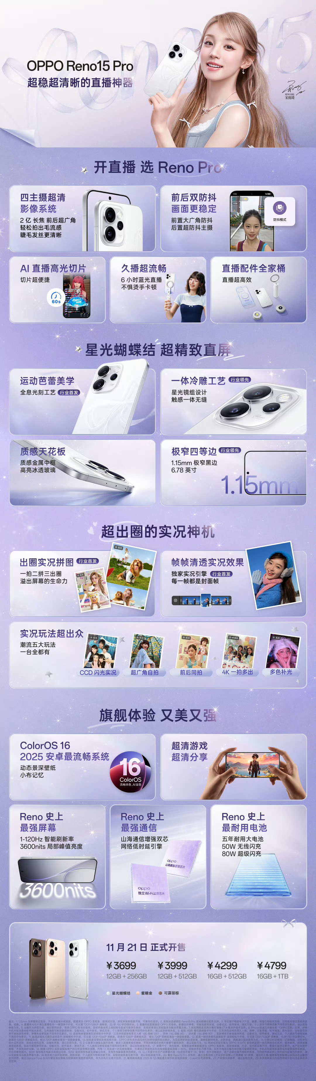 OPPO Reno15系列正式发布,标准版2999起,Pro售价3699起!