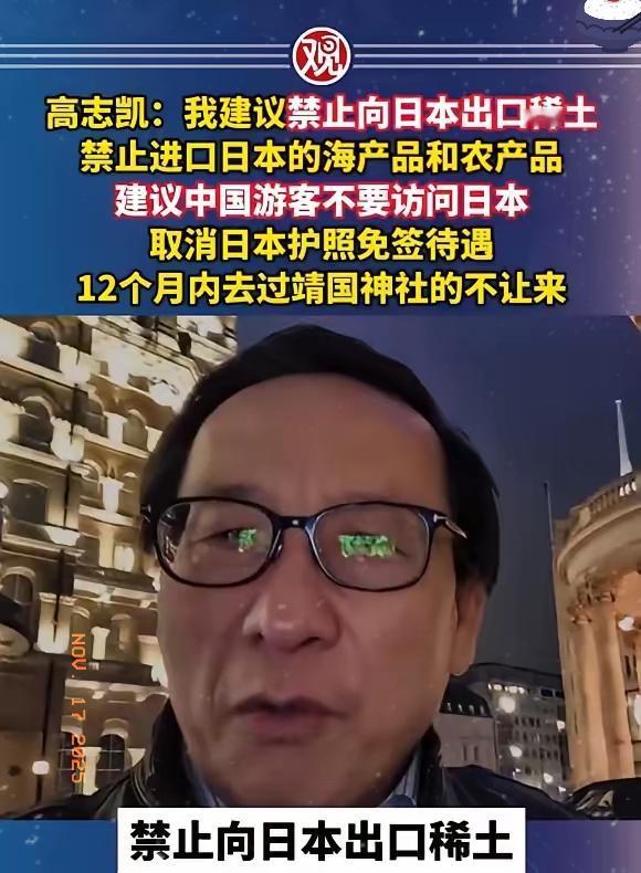 大快人心!高志凯硬刚日本右翼5大反制建议直击痛点,网友:早该这么干! 日本右翼频频挑衅无视历史正义还干涉台湾问题,每一次出格言行都让国人怒火中烧!近日高志凯先生针对其嚣张行径,直接抛出5大硬核反制建议,条条戳中要害瞬间点燃全网情绪! 这5条建议堪称“精准打击”:禁止向日本出口稀土、暂停进口日本海产品和农产品、呼吁我国游客暂缓赴日、取消日本护照免签待遇、限制12个月内到访靖国神社者入境。每一条都直击日本发展关键既回应了民众对日本右翼不当言行的强烈愤慨,更捏住了对方的“七寸”难怪网友纷纷直呼“过瘾”“说到心坎里了”! 要知道日本在稀土资源、农产品出口、旅游业等领域对我国市场依赖度极高,这些建议一旦落地无疑会让其感受到实实在在的压力。尤其是限制靖国神社参拜者入境,更是对其漠视历史、伤害亚洲人民情感行为的有力回击堪称“诛心”之举。 不过也有理性声音认为这些建议虽解气,但落地实施需兼顾情感与全局利益。反制的核心是捍卫底线、维护长远发展既要让日本右翼付出代价,也要精准拿捏尺度,找到契合长远利益的有效路径避免“伤敌一千自损八百”。 但不可否认的是高志凯先生的建议,道出了无数国人的心声:面对日本右翼的步步紧逼,我们不能一味忍让该出手时就出手,用有力举措捍卫国家主权与历史正义! 对于这5条硬核反制建议,你最支持哪一条?你觉得哪些措施最该优先落地?