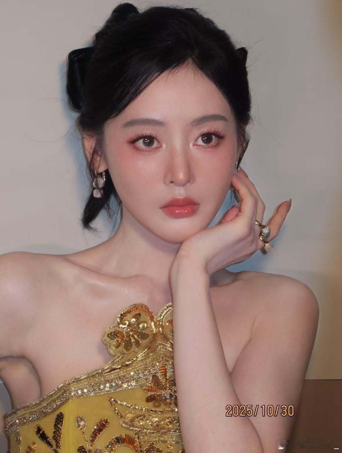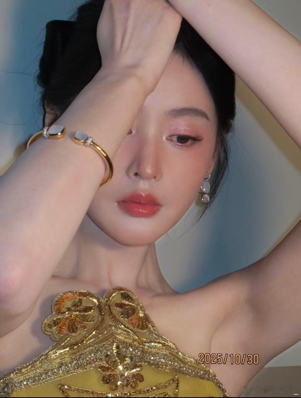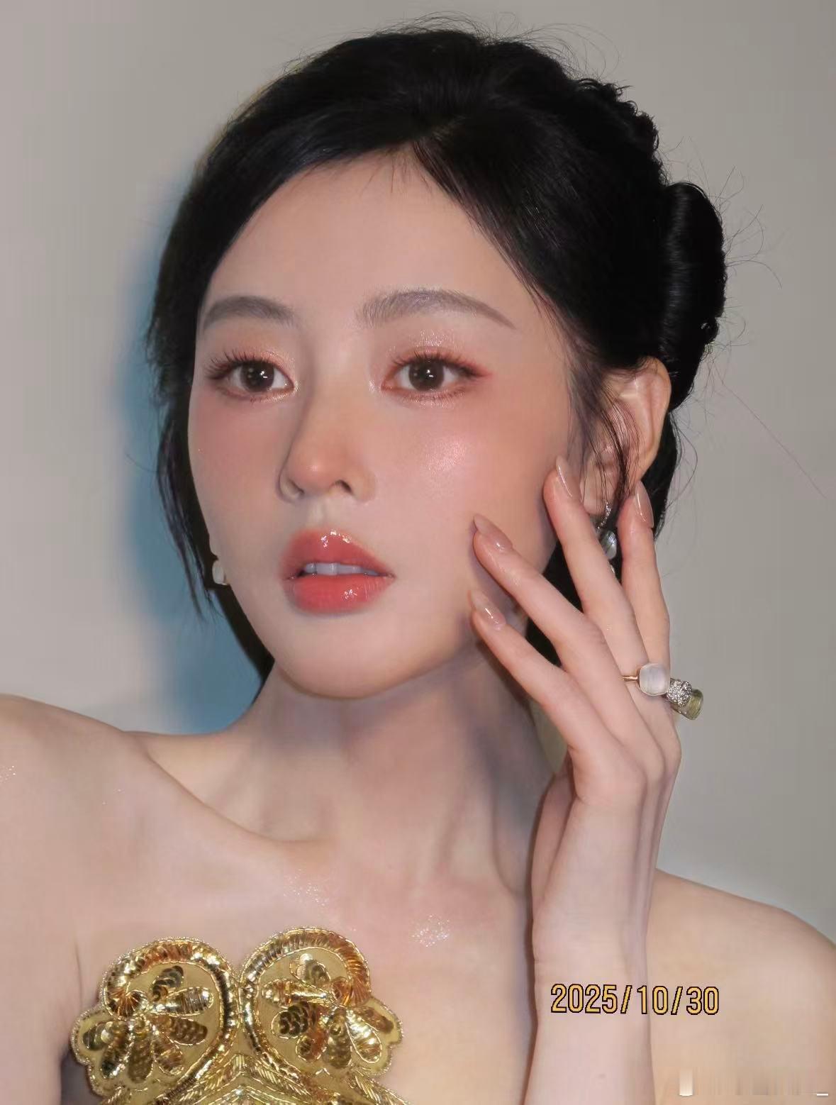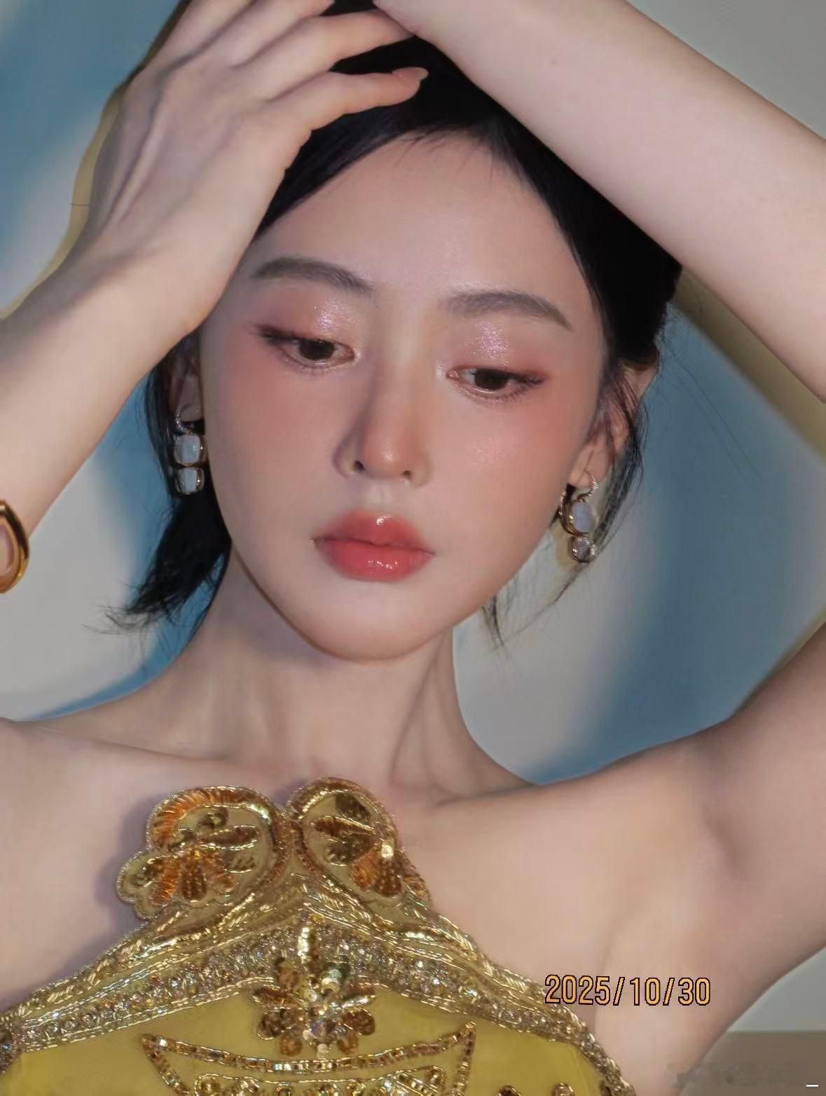 粉橘霞光扫过眼尾,唇间晕开微醺潮红,甜酷交织的灵动氛围感直接焊在脸上,美到犯规呢