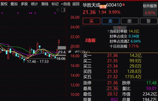 今天第二个涨停标的继续来袭!今天早上的$华胜天成sh600410$强势上板!