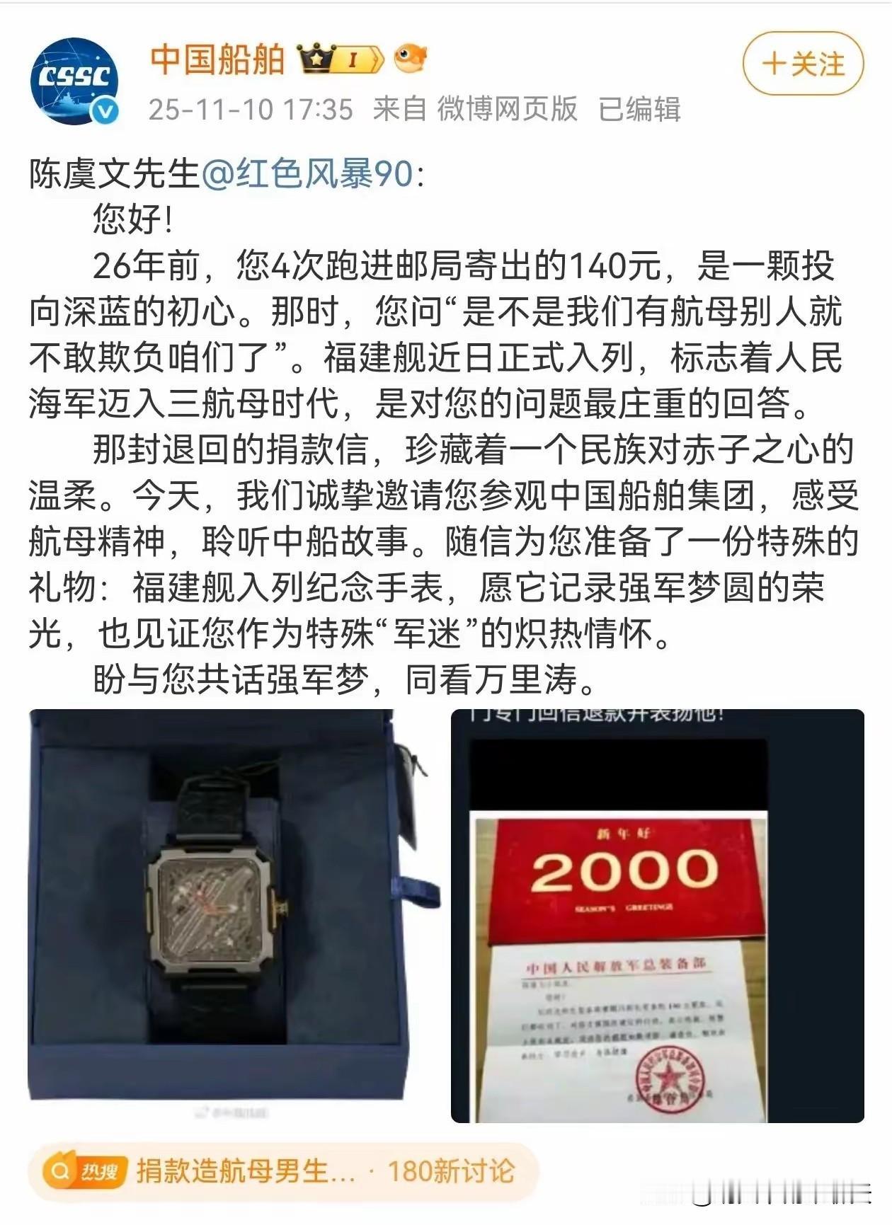 现在捐款还来得及不,咱也想捐点了,不知道该发给谁? 天下兴亡,匹夫有责,咱家的航母数量还远远不够,至少得10艘吧,那得多少资金才能搞定? 所以,众人拾柴火焰高,都出把力,加班加点造航母,有实力才有底气,才有本事去斩那些肮脏的脑袋。 郑重声明,咱可不是为了那表。