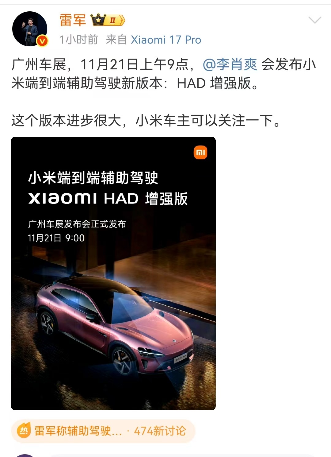 雷军说小米端到端进步很大我相信进步应该就是很大头部几家进步飞快快如逆水行舟
