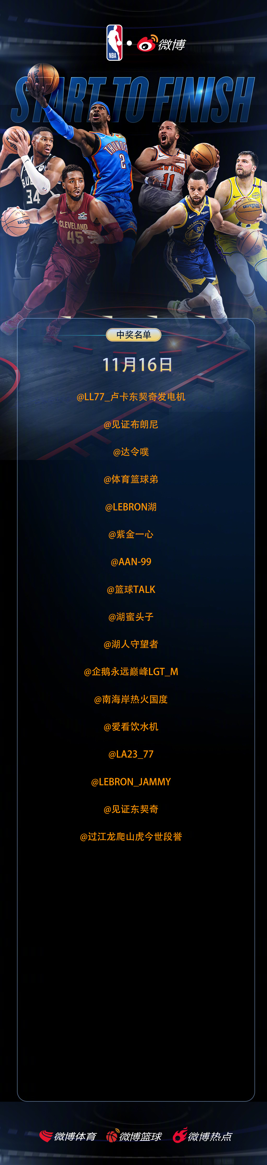 「 」11月16日中奖名单恭喜以下参与用户获得6.6🧧比赛激战正酣!快来参与球员打分参与方式:比赛日进入任意NBA球队超话,球员打分+10字评论,获得抽奖资格!