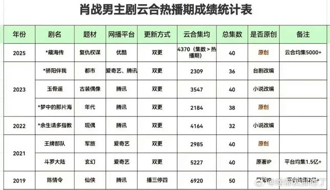 肖战的厉害不是在于剧的数据,重点是他演的剧的题材,都不重复!这就很可怕了,不拘泥于某一赛道或固定题材,演员的宽广度巨大。