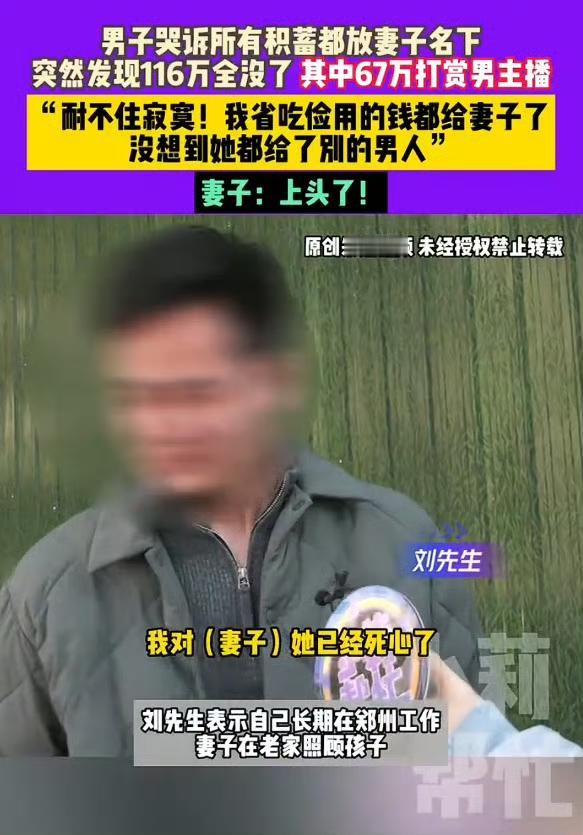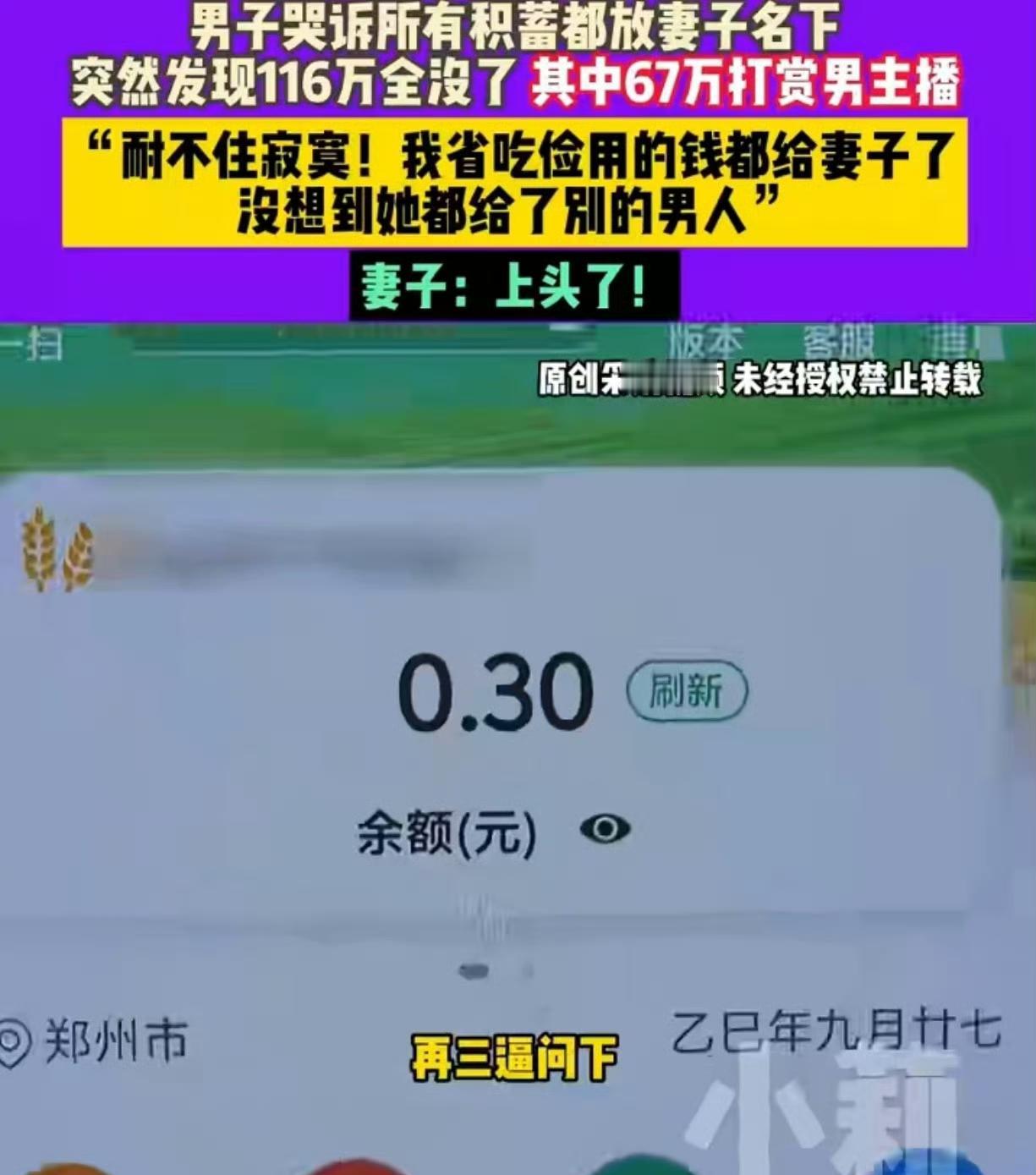虽然但是,这不纯纯福报吗? 你自己挣的钱,分币不留,全部上交。 结果,8年时间累计116万存款,现如今不但分币不剩,还负债8万多。 一问只有67万打赏男主播,剩下钱花哪了压根不知道。 看报道,男方诉求现在是想要回部分共同财产,然后离婚。 但最终能追回的钱,估摸着也就十几二十万。