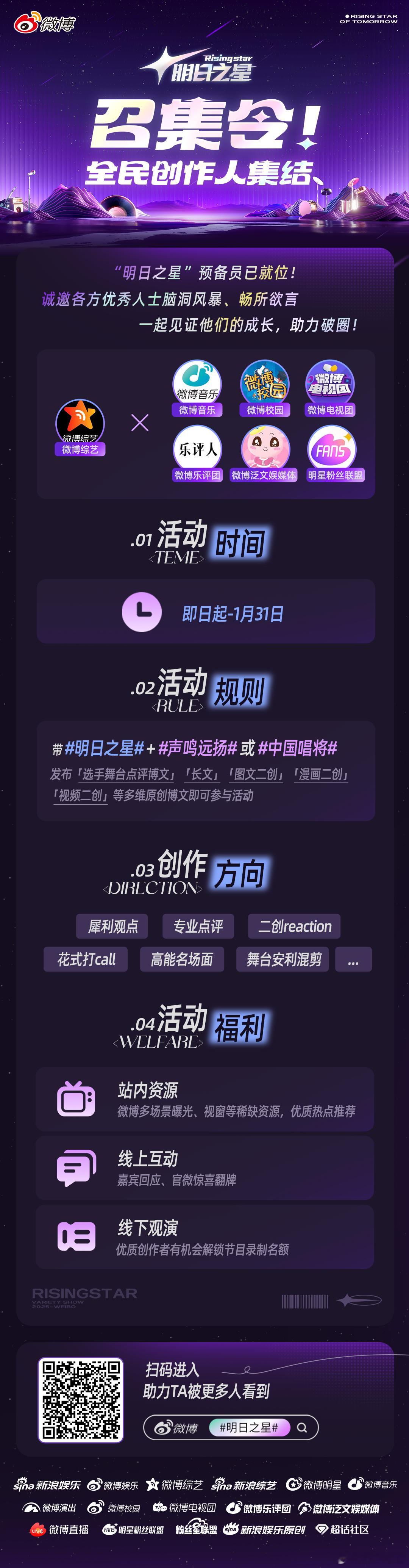 2025微博新声通道开启!「高潜之星」「神颜之星」「vocal之星」等你来pick!🔍《声鸣远扬》《中国唱将》新声选手已就位💎稀缺资源+原创曝光+专属运营等资源全链路加持🎁签名照+会员卡+录制名额等福利加码惊喜掉落让你的选择成为TA闪耀的序章,快来为TA投出宝贵的一票吧~
