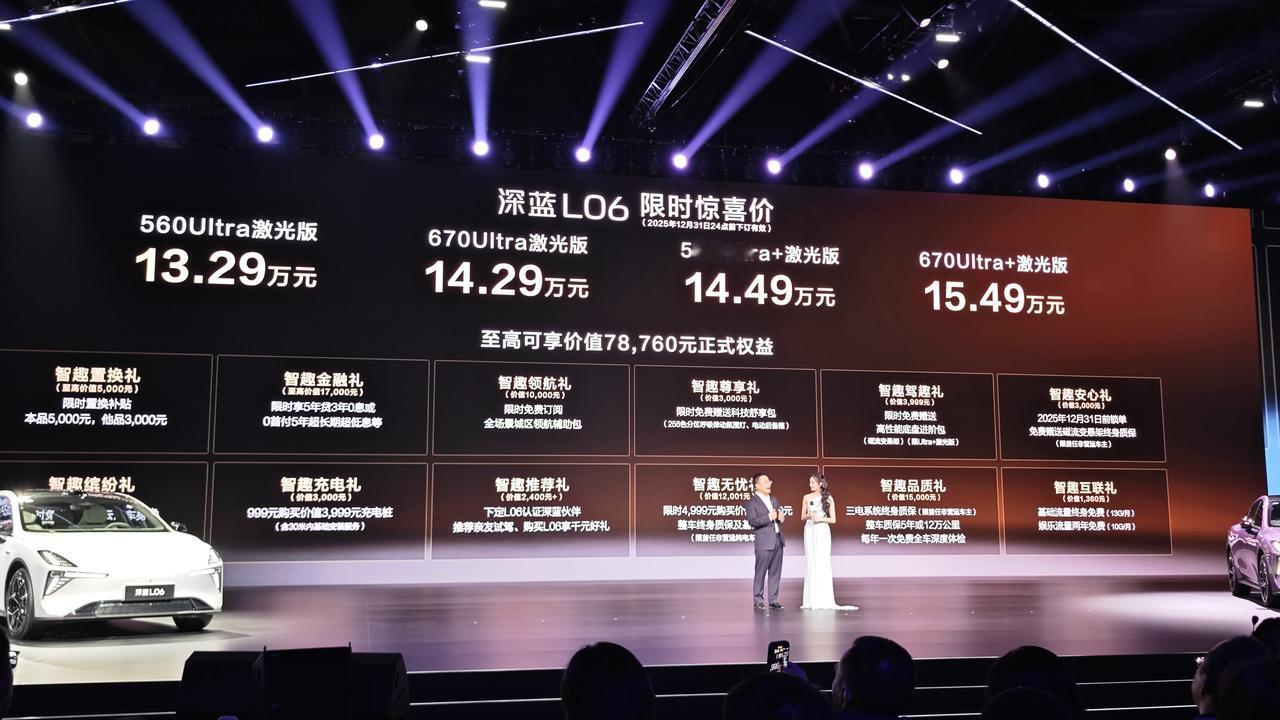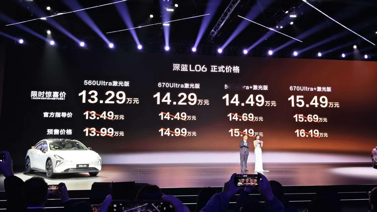 车盟快讯:11月18日,深蓝L06在山城重庆上市发布!上市价为13.49万元-15.69万元!新车搭载300万级法拉利同款磁流变悬架,中国品牌第一个量产搭载磁流变悬架车型,前麦弗逊后五连杆悬架、200kw后驱电机,为操控感获得提升!激光雷达+双地平线J6M芯片,全场景领航辅助,以及3nm天玑S1 Ultra座舱芯片使得车机丝滑流畅!一体式压铸车身、100L前备箱与464L后备箱、车内256色氛围灯、双区热泵空调、前排座椅通风加热记忆礼让、50英寸AR-HUD,使得每一次出行都是一种享受! 即刻下订可享受:限时惊喜价13.29-15.49万元、金融权益