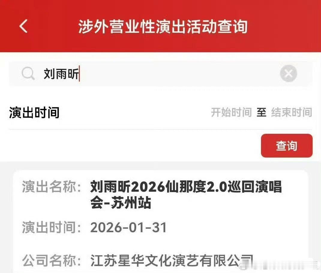 刘雨昕仙那度2.0苏州站获批,26年1月31日,视听盛宴期待