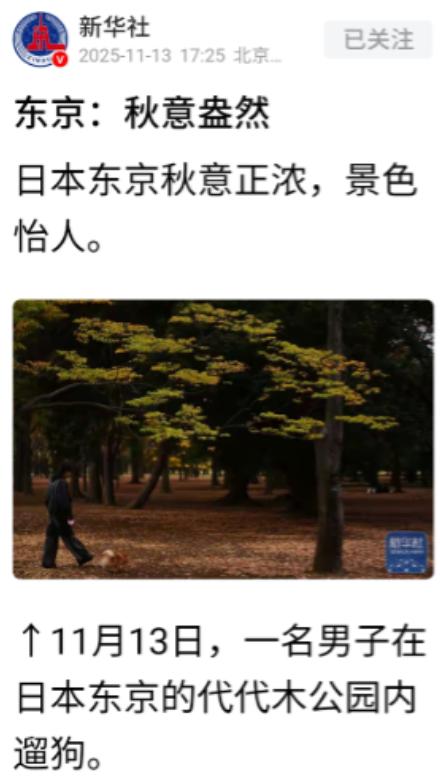 正当全国人民都在批斗日本首相高市早苗之时,新华社突然发了一组日本东京代代木公园的