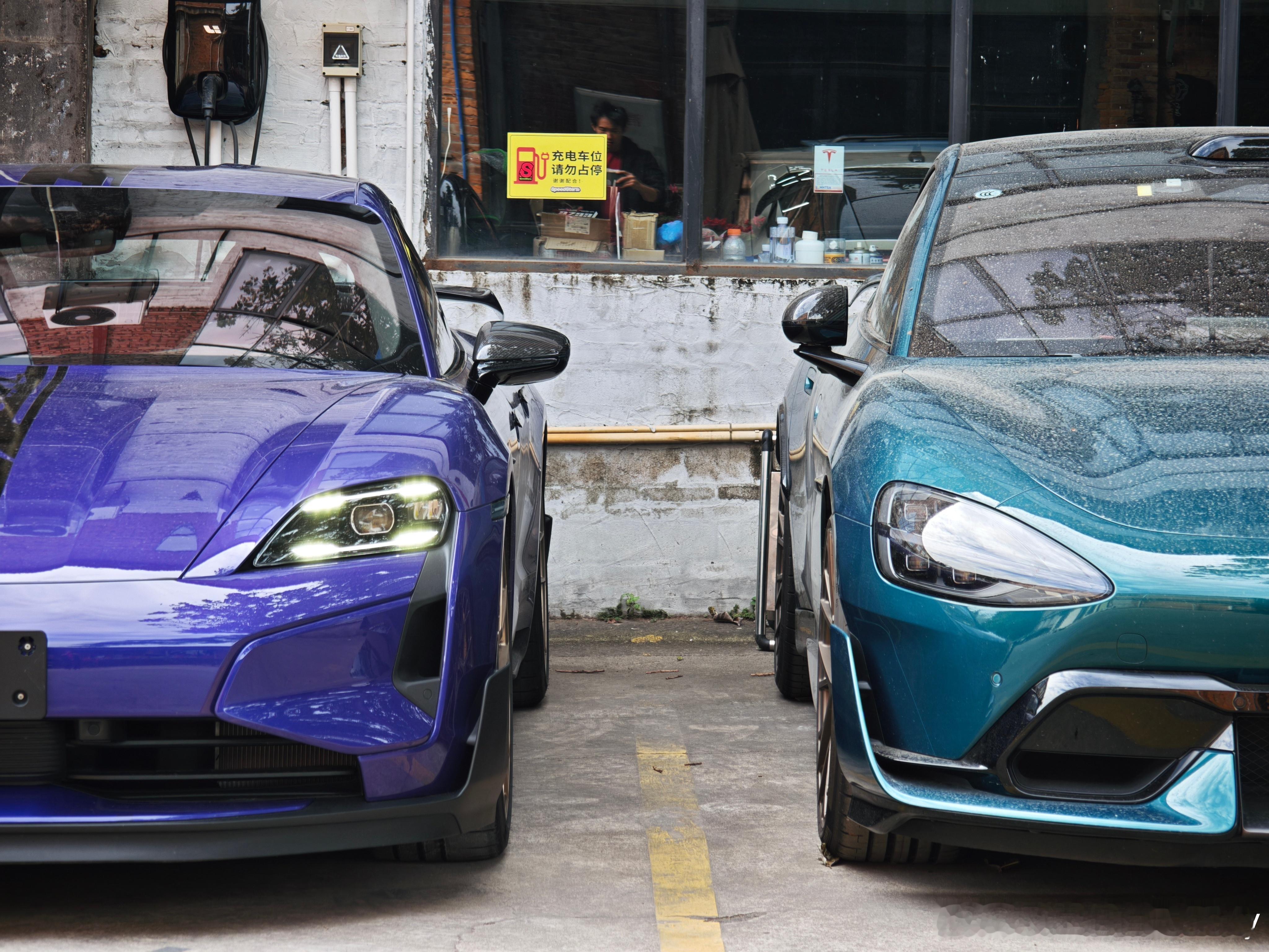 两车都是标准高度,直观看看Taycan 到底有多低。分享一个听说的故事(不保真)其实Taycan 最早是燃油车来的,也就是之前传闻的Pajun,Panemra Junior,小帕美。但盘算后觉得这种小一点尺寸的四门油车不符合品牌调性,其实Macan 已经足够满足,所以项目就转向做电了。不知道是不是这个原因才使用T型电池,但现在看来其实反而是一个优点,对于驾驶者之车来说。